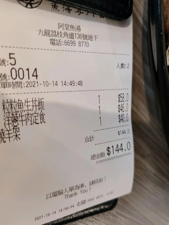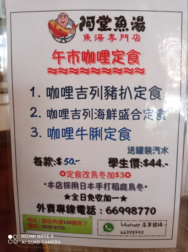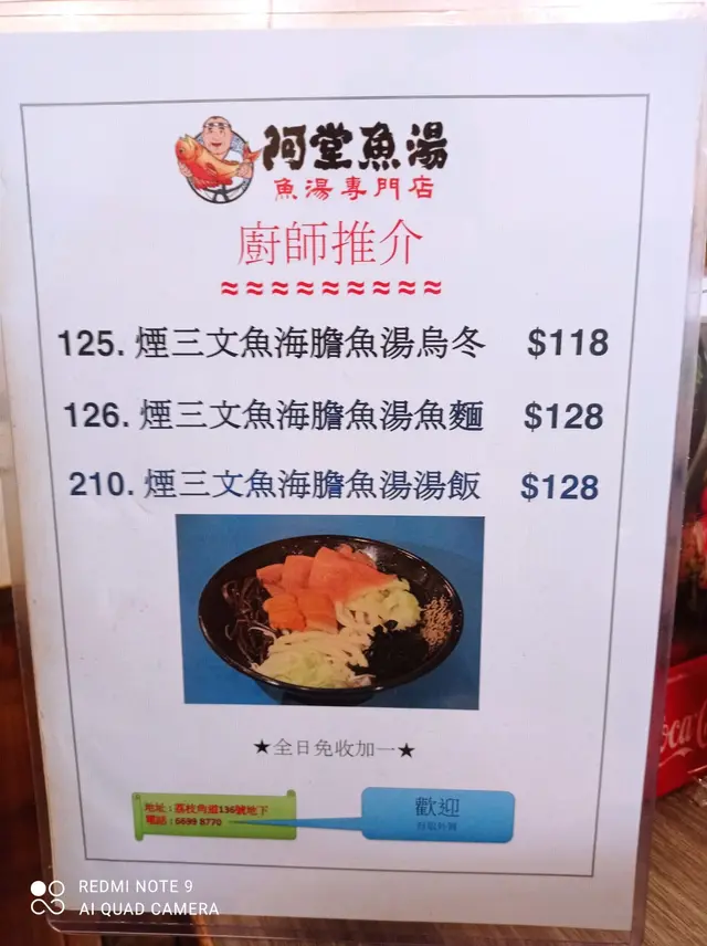 阿堂魚湯 (太子) 網址: https://s.openrice.com/QrbS0zgw400 地址: 香港太子荔枝角道136號地舖 電話: +852 66998770