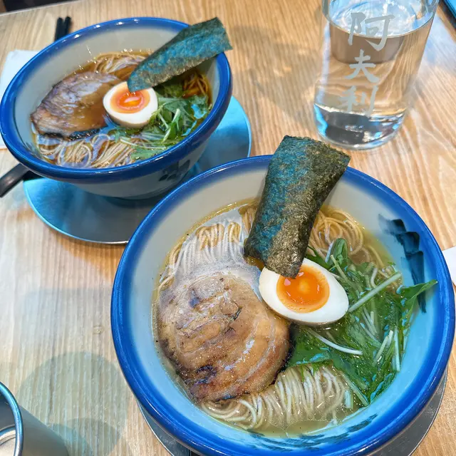 ❰阿夫利拉麵❱ 豚骨鹽味拉麵 🍜📍尖沙咀彌敦道100號The ONE 2樓 i.t orange forest內呢間阿夫利係我第三次光顧,頭兩次都係揀最招牌嘅柚子🍊塩/醬油,印象唔錯,屬淡麗風格,柚子香味帶黎不少記憶點,配雞骨湯,今次就試試佢嘅豚骨湯啦!香味 (4.5/5)可能我一早冇睇Menu張圖睇得夠清楚,原來呢款麵係配黑蒜🧄油。有黑蒜油,當然香味撲鼻,而叉燒嘅焦香味亦應記一功,好香。湯 (4/5)豚骨嘅味道其實並唔係好似一蘭d豚骨湯咁煲到咁濃郁,不過正好同鹽味結合到,取得味道上嘅平衡點,呢吓係好嘅。另外鹹度算剛好,如果主打淡麗風的話,我認為鹹味仲有稍稍下調嘅空間。黑蒜油嘅量都唔少,食得過癮不過油膩感稍稍偏重。麵條 (4/5)全粒小麥粉造成嘅麵條,直身,口感好,爽口又有韌性。最難得係,佢個湯夠熱之餘,個麵係由頭爽到尾,唔會話浸到腍左。配料 (4/5)豬叉燒都係最傳統嘅五花肉卷式叉燒,味道,香味同口感都非常好,焦香味正好同黑蒜互相配合。溏心蛋偏淡,冇點刻意調味,接近係水煮蛋咁,不過吸左d鹽湯食上來都還好 。木耳,青蔥同紅薑絲嘅量洽到好處,由頭食到尾都有清爽口感。雖然阿夫利唔係我嘅首選,但係往往每過一排都會想食返碗,因為佢風味清新討好,份量稍偏少不過如胃口不大嘅時候食就剛好。…查看更多