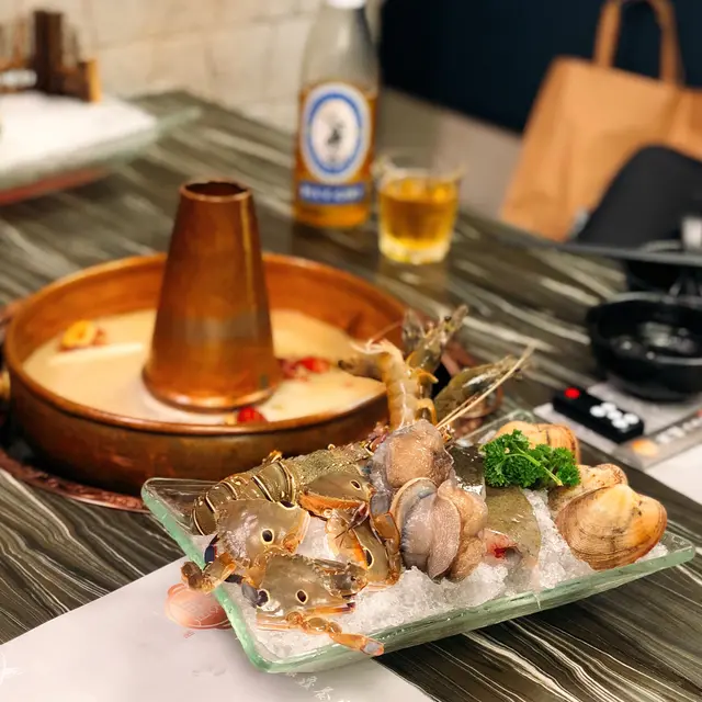 有屯馬線去九龍城方便左,所以同同事放工去打邊爐。呢間火鍋店雖然唔係任食,基本上一個set乜都有齊,應該都夠食。最尾揀左阿姐牛魔皇火鍋($398/位)。🔅廚師推介小食雞腳硬左少少,唔太咬到😅。🔅象拔蚌刺身擺盤擺得幾靚,中間好似係個膽,staff話丟落去煮熟幾好,但我地都唔敢食😂。象拔蚌都幾多幾新鮮,唔錯。🔅是日精選燉湯湯都ok,普普通通無乜味精。🔅香辣牛筋雞煲平時食雞煲就淨係得雞,呢個有埋牛筋,大約6-7舊。煮得啱啱好先丟落去,無煲到霉晒,有少少辣夠惹味!雞就普普通通,都多,都算多肉。🔅火鍋湯底有辣同唔辣,揀左鴛鴦。牛就唔辣,熊仔就辣,打卡一流😂。🔅牛魔皇月光寶盒擺得幾靚,牛都幾好食,應該計人頭每人每款有2件。🔅海鮮 & 火鍋配料 (任選8款)呢到揀既牛就無月光寶盒既咁好食,其他配料都普通。💬Set唔夠既可以再散叫,但其實食個set都夠晒😋。有加一,指定飲品+$20任飲,+$30指定啤酒任飲,飲品種類唔算多。Overall都正常,有少少特色打卡位(月光寶盒同火鍋牛&熊仔),但cp值唔算好高,未至於會特登去九龍城食。…查看更多