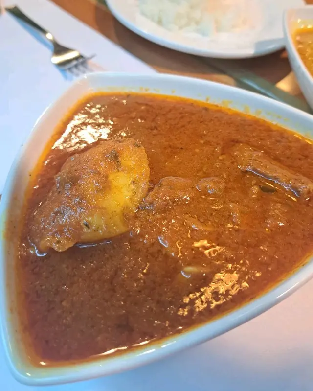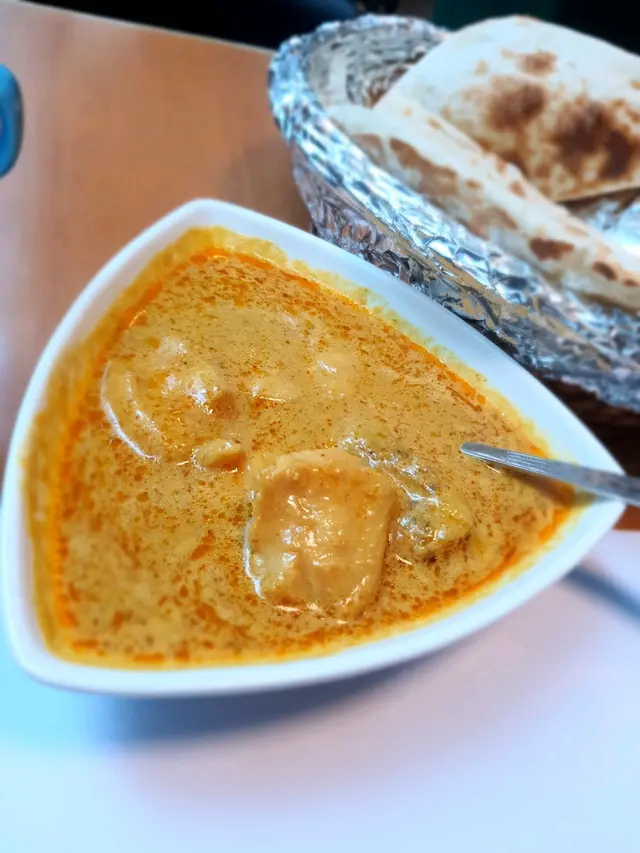 Went to this resto, recommended by my brother, with my colleagues for lunch. .I ordered Lamb Curry with Nan. The lamb was truly tender and not too fatty. It absorbed the flavours of the curry nicely, but the portion was a bit small. The nan was served hot and delicious with butter. Dipping it in the curry enhanced its savoury taste. My colleagues ordered Fish Curry with Rice and Chicken Korma with Nan respectively. The fish curry was soft, while the chicken korma was meaty. I personally preferred the creamier chicken korma..The lunch set included coffee or tea, and didn't have any service charge, so the price was quite economical. The seating was quite comfy and there were not a lot of ppl. 查看更多