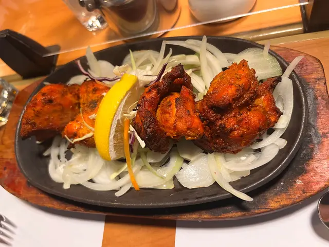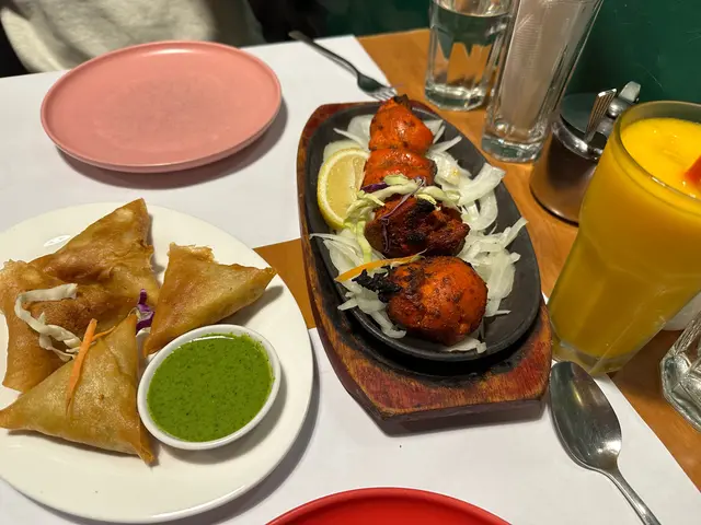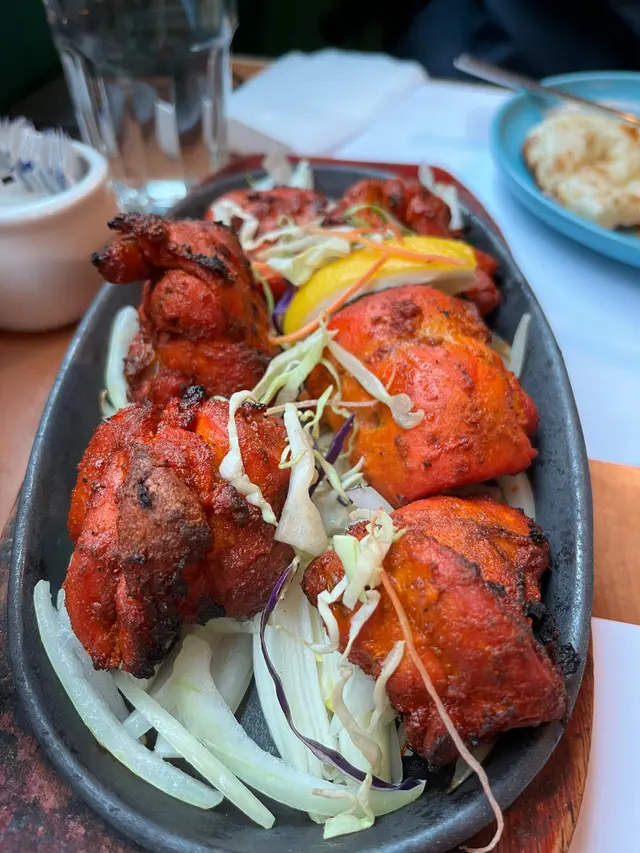 無骨tandoori chicken,上桌時鐵板枝枝聲響。啲椰菜同洋蔥都係非常之香口。啲雞睇落雖然係有啲硬,但咬落其實係林林地的。咖哩角都好特別,因為佢好新鮮炸到好香脆,唔會太辣。點個個青色既醬之後都係別有一番風味,因為個醬酸酸地,開胃得嚟又有啲美味。查看更多