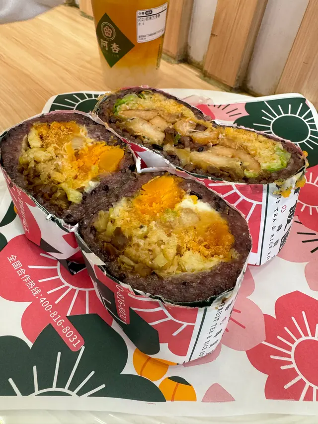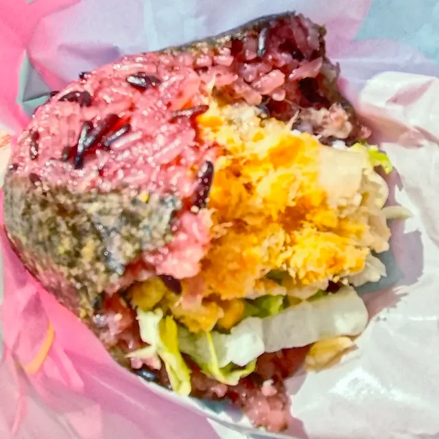 睇見個飯團size以為好輕盈?錯覺嚟喋! 拎上手就知「紮實」兩個字點寫,沉甸甸 嘅,絕對係良心製作。佢哋嘅紫米飯底真係一絕,蒸得啱啱好,煙煙韌韌,每啖都聞到淡淡紫米香,同普通白飯完全唔同層次!個自選醬料我嘅配搭永遠係wasabi芥末醬!嗰種攻鼻嘅辛勁同紫米嘅溫和形成反 差,即刻將成個飯團嘅味道提升到另一個境界,醒神又開胃!餡料方面絕對係「落重本」,唔會咬幾口都 係飯。樣樣都足料每一口都食到豐富口感,真係「啖 啖有驚喜」。…查看更多