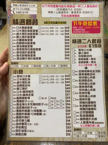 又係馬鞍山街坊分享時間💁🏻住左咁耐第一次去阿桂老友粉,原來係馬鞍山區都好出名,好多人會黎馬鞍山特登食佢😧我揀左蔥油腸仔豬扒飯套餐,再加左香脆炸雞翼5隻同埋煎韮菜豬肉餃子6隻😆本身本住試伏既心態食,因為成間舖既人都係食粉麵,無人食飯。點知食落好驚喜,豬扒肉質好鬆軟入味;腸仔係廚師腸煎得好香,係童年既味道;飯就偏淋身,硬身返少少就好🤏🏻小食真心出色:雞翼即叫即炸,好大隻,肉質鮮嫩,一咬落去爆晒汁(食個陣要小心d🤣);韮菜豬肉餃子都好大隻,菜既份量多d,感覺上健康d,煎得好香唔覺得燶,咬落係脆既,唔算好重口味👍🏻