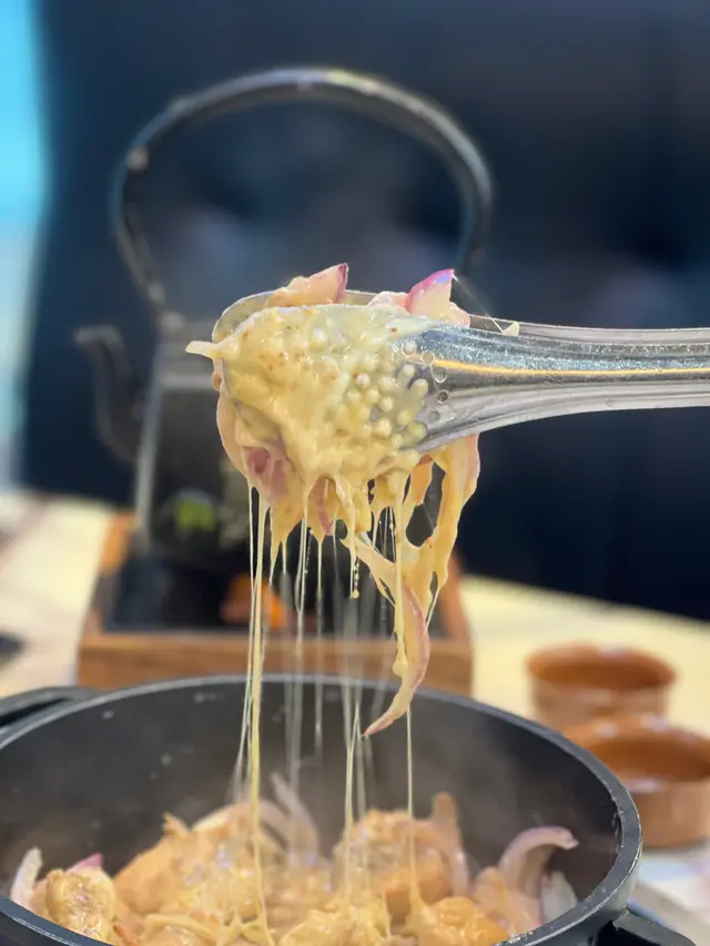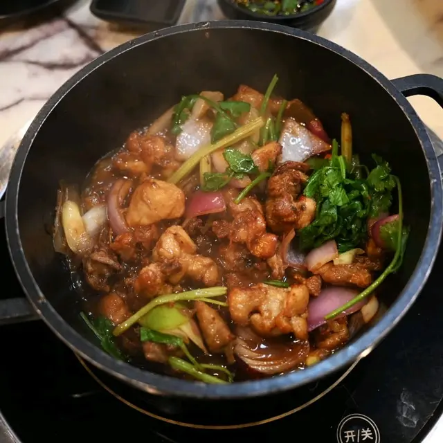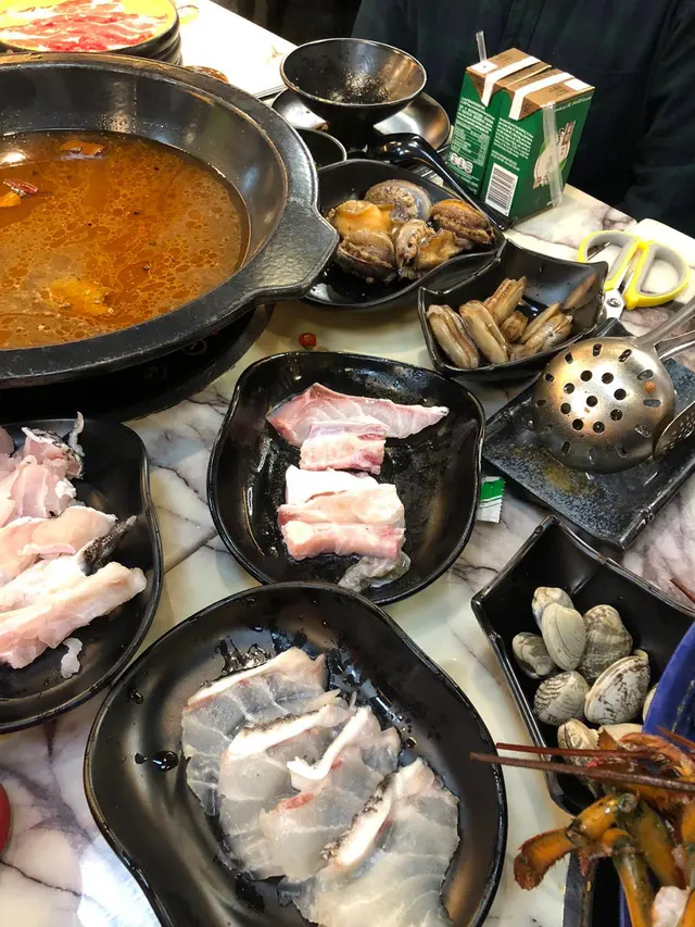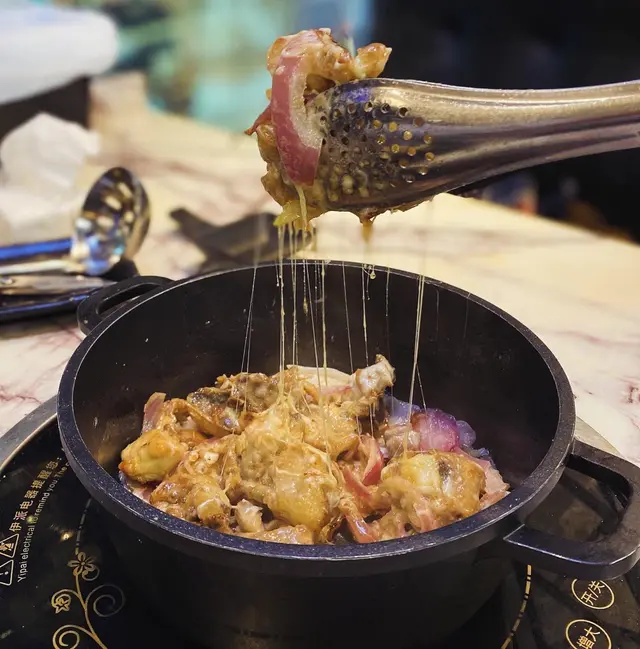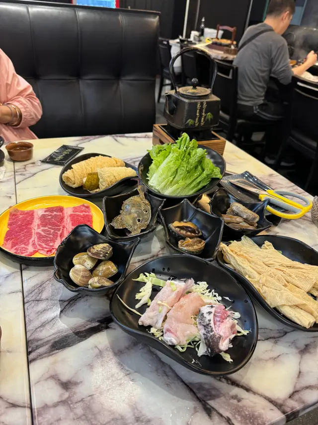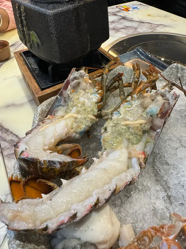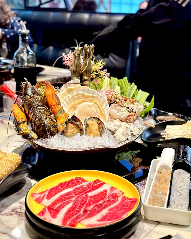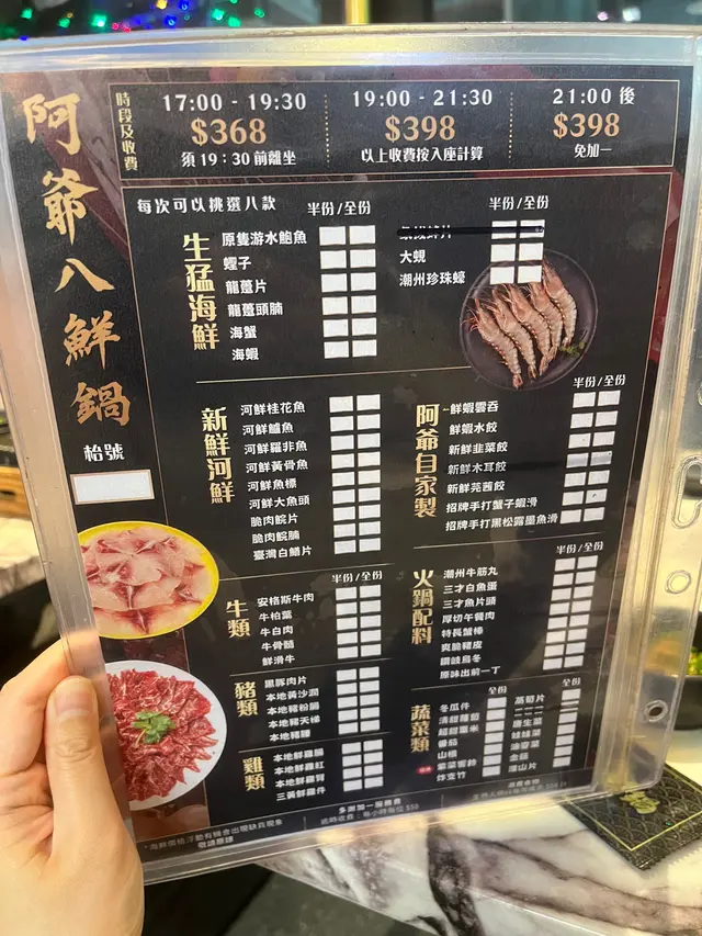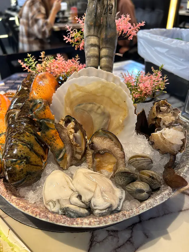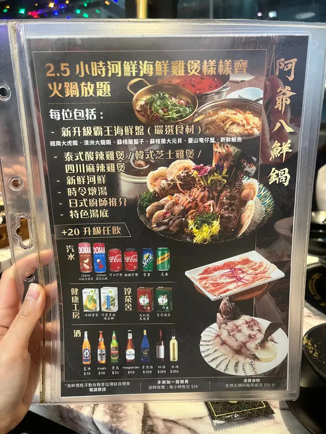 今日涼涼地,又係時候打邊爐🤭同朋友黎左阿爺八鮮鍋食雞煲+火鍋放題,$398任食兩個半鐘,加$20就可以任飲各款汽水、健康工房和淳茶社飲品~一坐低店員就送上一壺燉湯,重有小火暖住,好細心又有儀式感。之後介紹雞煲有三款口味:泰式酸辣/韓式芝士/四川麻辣。我地唔想食辣,所以叫咗韓式芝士雞煲。雞件上鋪滿芝士雖然有啲邪惡,但係真係好惹味,連啲洋蔥都好好食,睇住啲芝士拉絲好治癒!店員話佢哋做緊推廣,加$108就可以任食即叫即劏象拔蚌刺身。朋友見到魚缸入面排得整整齊齊嘅新鮮象拔蚌,雙眼發光🤩毫不猶豫,梗係加啦!第一轉象拔蚌連同另外幾款刺身以刺身船上枱。新鮮、好睇又好食😋我哋秒速KO左再encore🤣食足3轉真係回哂本!到火鍋上場,其他火鍋配料都未黎得切叫,又送來一份霸王海鮮拼盤🤣有越南大虎蝦🦐、澳洲大龍蝦🦞、蘇格蘭大元貝、臺山奄仔蟹🦀、鮑魚同珍珠蠔。海鮮湯底用黎淥海鮮就係鮮上加鮮!呢度啲海鮮真係勁新鮮!兩隻鮑魚重識郁,蟹腳都仲震騰騰,好誇張🤩淨係呢個海鮮拼盤已經值回票價!其實menu上重有好多海鮮🐠河鮮🐟同肉類都係任叫架,真係好抵食!不過食到呢度其實我哋兩個都飽左😂所以其他配料唔係叫左好多,其中個人推介有🫶🏻安格斯牛肉、台灣白鱔片、招牌手打蟹籽蝦滑、紫菜響鈴👍🏻值得一讚嘅係呢度嘅服務🤗雖然好忙,但係店員們個個都好有禮貌同耐性,不時會黎收碟,重適時提我哋encore象拔蚌🤣呢餐真心滿意🥳…查看更多