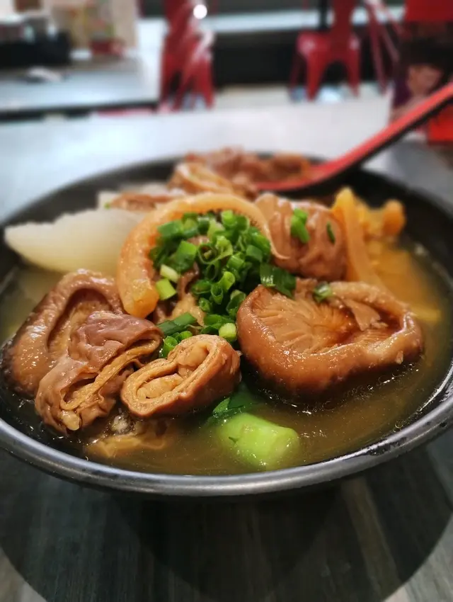 餐廳:阿美車仔麵🏫地址:櫸樹街88號奧柏‧御峯地下G11-G12號舖數數香港的地道美食,車仔麵必佔其中一席位,阿美車仔麵在我家附近,今日下午和媽媽去試吓🥰~秘制牛腩、腸仔、手打牛丸、芽菜、豆卜配粗麵(清湯底)牛腩炆到好淋,好重牛肉味; 👍牛丸新鮮彈牙;湯底清甜,係由無味精既鮮雞熬製,冇任何味精,媽媽非常滿意😁~滷水豬大腸、秘制金錢肚、蘿蔔、紅腸、貢丸(娃娃菜底,牛腩汁)滷水豬大腸肉質軟嫩,完全冇異味,蘿蔔索哂湯頭的精華,清甜無渣;金錢肚夠爽有嚼勁;貢丸入口彈牙,好好味,除咗一般嘅麵底之外,仲可以轉菜底,係一個唔錯的選擇🤗~生炸雞肶外皮炸得金黃酥脆,肉質依然保持鮮嫩多汁,醬料調配適中,食一隻超滿足😁查看更多