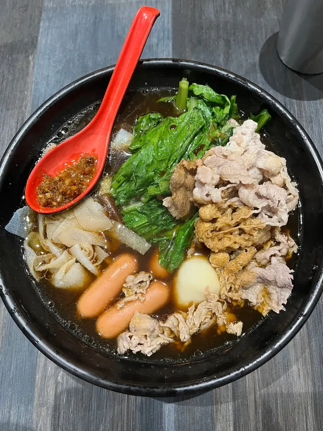 同朋友食車仔麵,嗌咗好多餸,而且有小食,全部都好高質,環境又舒服!湯底好香嘅腩汁味,有少少八角味.個湯底色濃, 聞落好香,食落好香嘅腩味.加辣食車仔麵一定要食佢啲辣.但嘅小辣都好辣,所以辣都好夠味,幾刺滶.食得出個辣用咗唔同材料炒所以都好香口,味道好豐富,小辣夠辣之餘,都好足夠撈湯,成個湯都好香好正,啲餸索咗湯好好食!咖哩魚蛋魚蛋關注組組員一定要嚟食,個魚蛋勁彈牙,魚蛋脹卜卜,啲咖哩汁好入味.椒鹽墨魚丸勁大粒,同埋好彈牙,啲椒鹽喺面,面好脆,又唔會太鹹 啱啱好,好好食。炸韮菜餃即叫即炸,所以係勁熱,放一陣後,但變得好脆,一咬開就有餃子嘅肉汁同埋菜汁,好juicy!餸/底啲餸都好多選擇,每款加上去都唔算貴,最特別係佢可以揀麵底/菜底,揀菜底慨份量都好多!查看更多