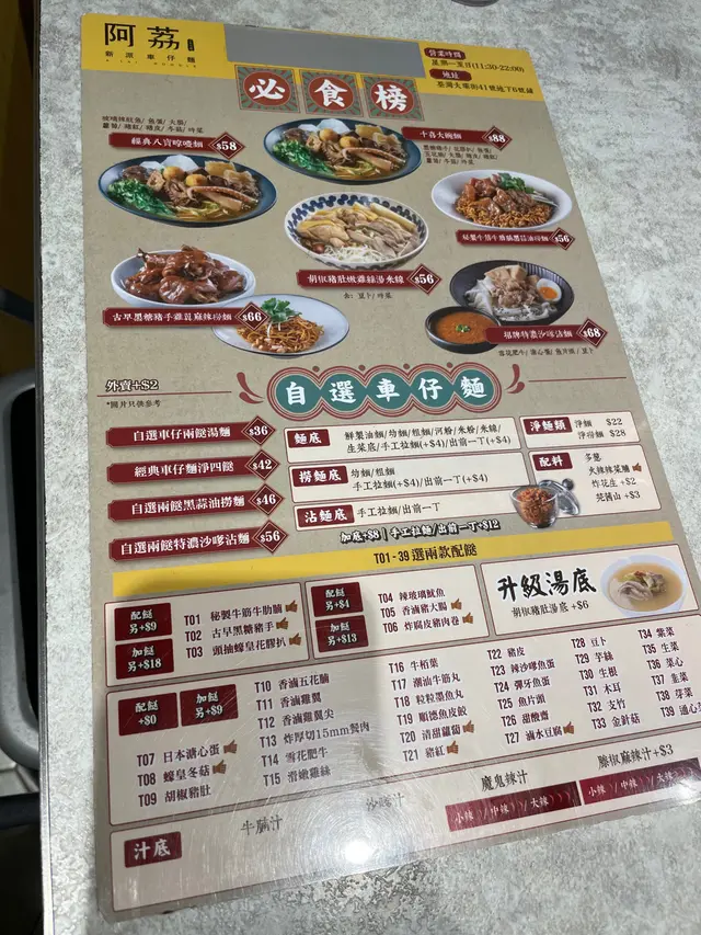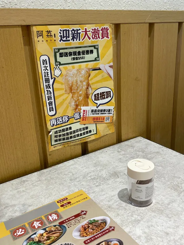 下午茶時間黎左阿荔車仔麵試左佢既招牌特濃沙嗲沾麵,見佢招牌有寫豬手,所以另外叫咗份豬手試下。店內環境衛生不錯,可能因為你係下午茶時段所以客人唔係好多。沾麵的沙嗲湯底還算濃郁,有好多花生碎,溏心蛋就好食既,其他配菜就一般般,麵方面佢地有公仔麵同拉麵揀,我要左拉麵,都係一般般。:)另外加左一份豬手,都煮得幾淋,不過味道一般冇咩特別。食物方面普普通通,都算ok既,不過冇想像中咁好食。如果經過可能會再試下佢既普通車仔麵。
