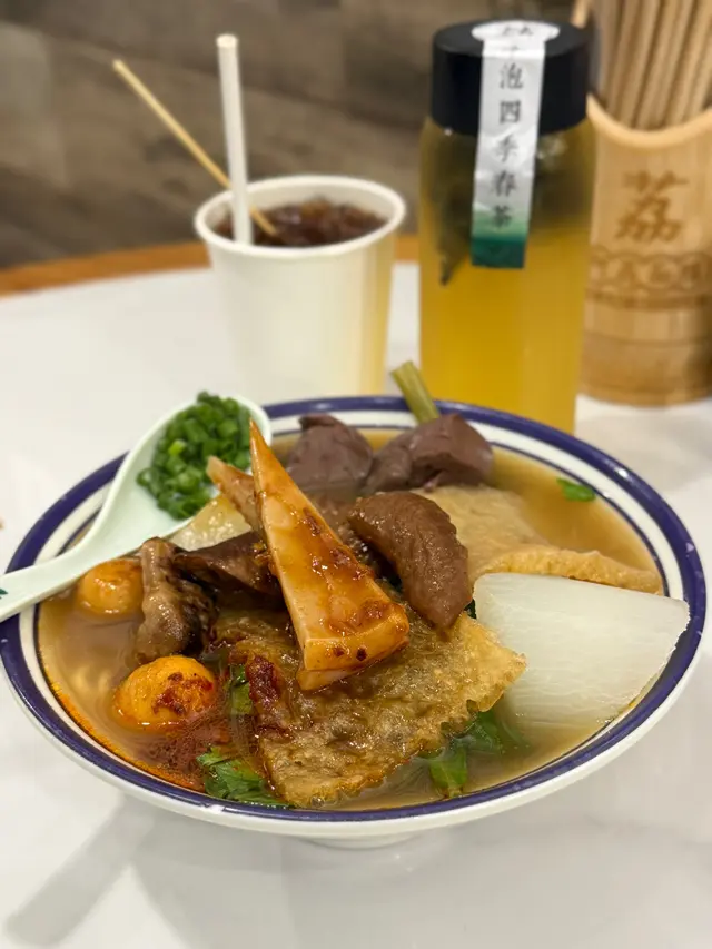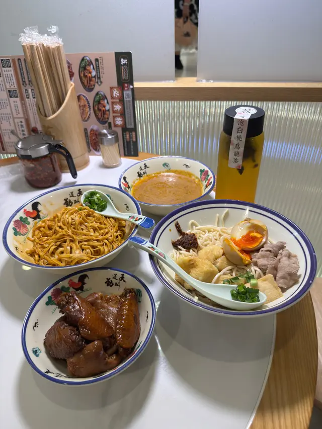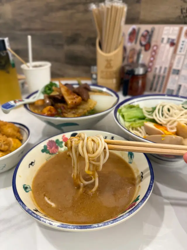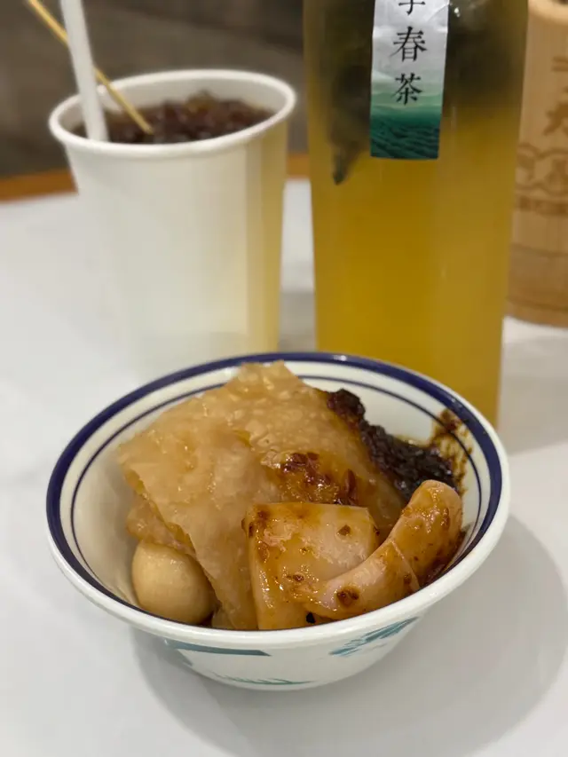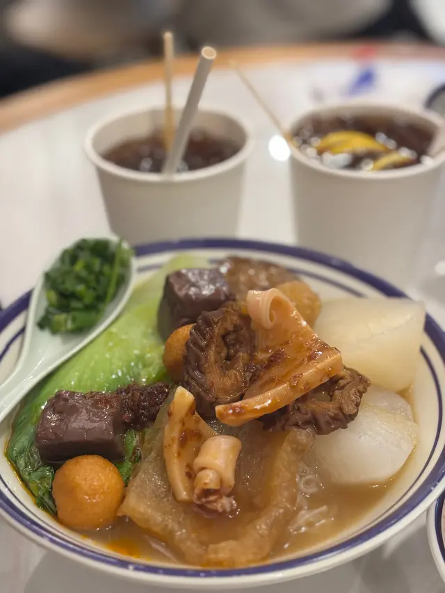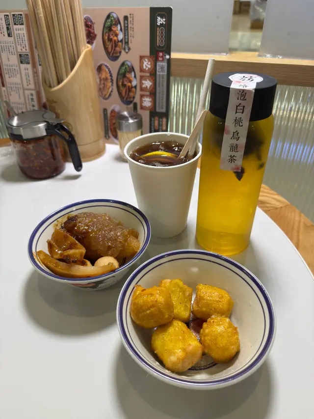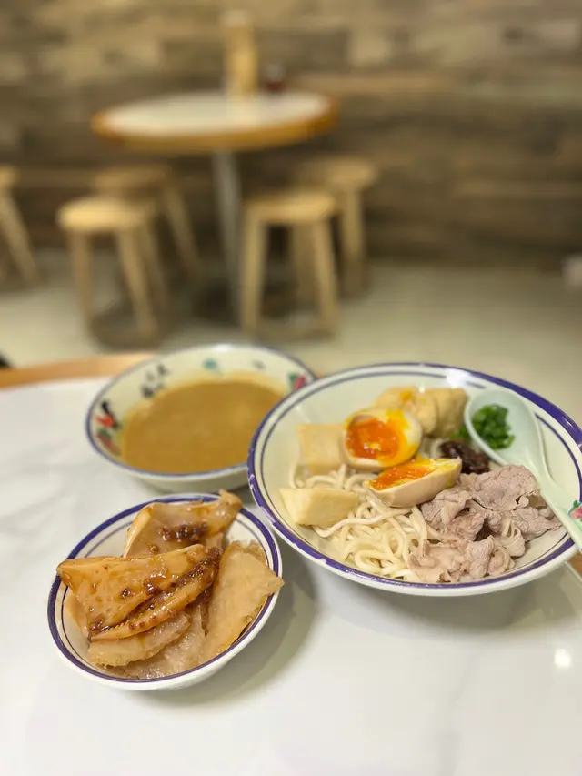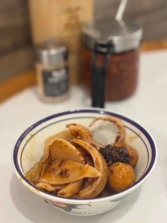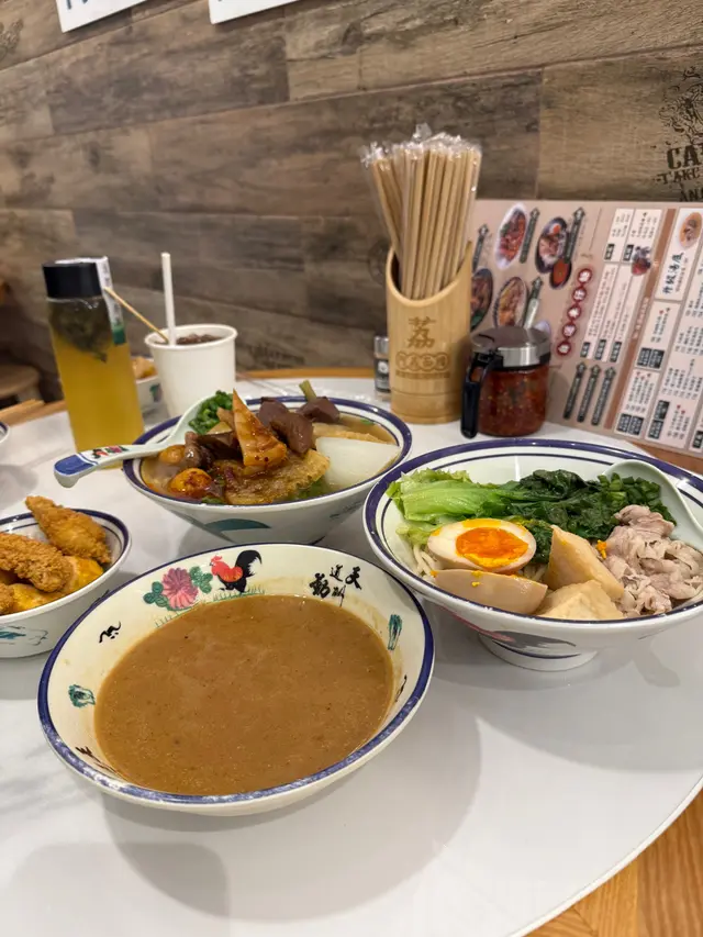 放假訓醒落街搵食,依間開左一排嘅車仔麵成日經過都無食過,今日決定食佢,叫左個經典八寶嗱喳麵、古早黑糖豬手雞翼麻辣撈麵同兩款小食經典八寶嗱喳麵入面有8款餸,有玻璃辣魷魚、魚蛋、大腸、蘿蔔、豬紅、豬皮、冬菇、生菜,麵底揀左鮮製油麵,加左牛腩汁,一送到嚟加咗兩匙羹火辣辣菜脯,估唔到個菜脯比我想像中辣,睇少左佢個辣,建議食之前先試下再決定落幾多匙,但係不得不讚佢個鮮製油麵好好食,食落去好滑身同爽口同掛湯能力高,索晒啲精華,玻璃辣魷魚夠爽脆,蘿蔔炆得好腍但就帶少少青味,應該冬天食會好啲,豬皮同冬菇好腍好入味,麵底同餸都足料古早黑糖豬手雞翼麻辣撈麵麵底揀左撈手工麵(小辣),手工拉麵食落比較煙靭,撈埋汁濃郁惹味,辣度適中,麻香十足,驚喜食到呢個黑糖豬手,燜到軟腍入味又帶微微甜香,雞翼滷得夠淋,推介黑糖豬手必叫小食叫左韭菜豬紅蘿蔔,豬紅惹味嫩滑,韭菜新鮮爽脆,可能個湯汁係清湯,所以唔係好夠味,如果加少少辣汁同腩汁會更加豐富黑松露醬炸單骨雞翼配炸燒賣雞翼炸到金黃酥脆,單骨設計方便食,點埋呢個黑松露醬,即刻高級咗幾個層次,炸燒賣外皮脆口,入面魚肉餡彈牙,唔使點醬都咁好食 …查看更多