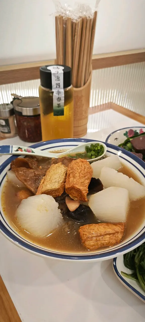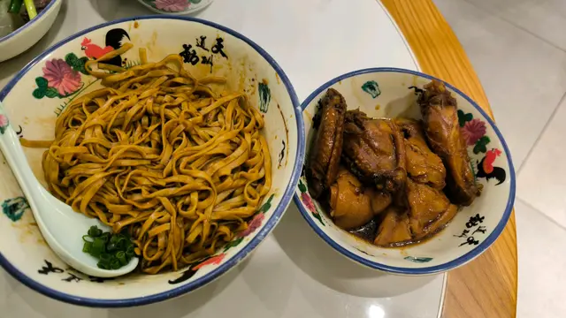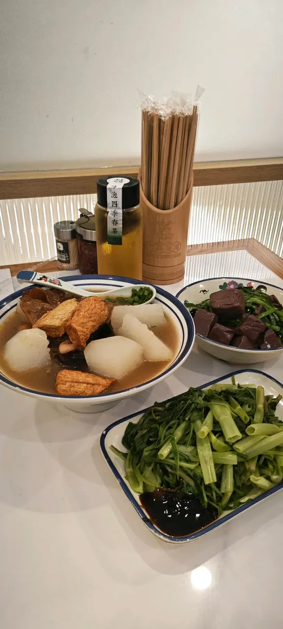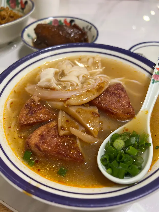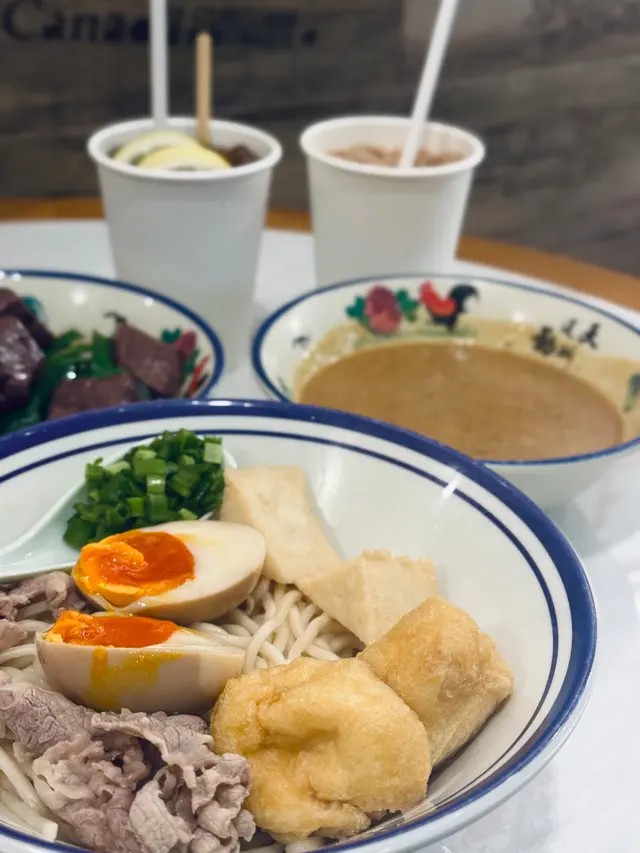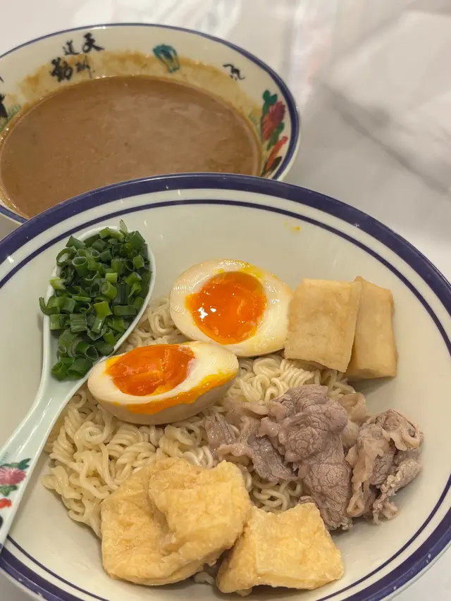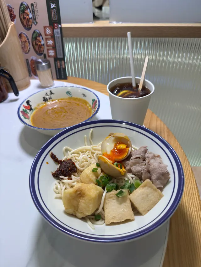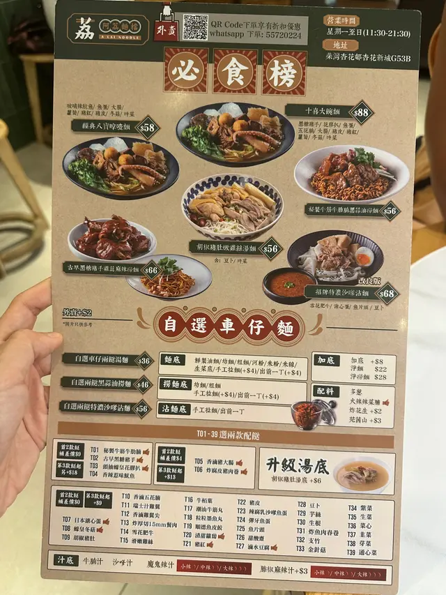 放假訓醒落街搵食,依間開左一排嘅車仔麵成日經過都無食過,今日決定食佢,叫左個經典八寶嗱喳麵、古早黑糖豬手雞翼麻辣撈麵同兩款小食經典八寶嗱喳麵入面有8款餸,有玻璃辣魷魚、魚蛋、大腸、蘿蔔、豬紅、豬皮、冬菇、生菜,麵底揀左鮮製油麵,加左牛腩汁,一送到嚟加咗兩匙羹火辣辣菜脯,估唔到個菜脯比我想像中辣,睇少左佢個辣,建議食之前先試下再決定落幾多匙,但係不得不讚佢個鮮製油麵好好食,食落去好滑身同爽口同掛湯能力高,索晒啲精華,玻璃辣魷魚夠爽脆,蘿蔔炆得好腍但就帶少少青味,應該冬天食會好啲,豬皮同冬菇好腍好入味,麵底同餸都足料古早黑糖豬手雞翼麻辣撈麵麵底揀左撈手工麵(小辣),手工拉麵食落比較煙靭,撈埋汁濃郁惹味,辣度適中,麻香十足,驚喜食到呢個黑糖豬手,燜到軟腍入味又帶微微甜香,雞翼滷得夠淋,推介黑糖豬手必叫小食叫左韭菜豬紅蘿蔔,豬紅惹味嫩滑,韭菜新鮮爽脆,可能個湯汁係清湯,所以唔係好夠味,如果加少少辣汁同腩汁會更加豐富黑松露醬炸單骨雞翼配炸燒賣雞翼炸到金黃酥脆,單骨設計方便食,點埋呢個黑松露醬,即刻高級咗幾個層次,炸燒賣外皮脆口,入面魚肉餡彈牙,唔使點醬都咁好食 …查看更多