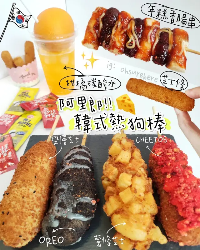 香港街頭實現芝士拉絲自由(❤ω❤) 這小店的韓國熱狗棒都是即叫即整♡︎ 新鮮現炸!脆卜卜!芝士拉絲無極限,拉極唔斷好過癮🤣 🎈熱狗兩個+芝士波四粒+年糕香腸串 $120阿里郎熱狗棒即是腸仔熱狗棒雖普通但香脆的熱狗配腸絕對無錯\(^ヮ^)/鴛鴦芝腸粟米呢款all in one最啱貪心的我ت實現芝士拉絲自由(≧◡≦) ♡又可以品嘗多層次口感味道可惜腸仔與芝士分佈於熱狗的前後未能讓我一口同時食到腸仔、芝士、脆熱狗的滋味… 芝士波波、年糕香腸都唔錯~🎈韓式炒年糕&炸魚糕 $49街頭食炒年糕別有一番風味(*^‿^*)年糕又辣又香好惹味炸魚糕亦幾特別🎈青提子冰糖葫蘆 $25冰糖葫蘆是小店新品青提子新鮮爽甜薄脆的冰糖更增加了口感…查看更多