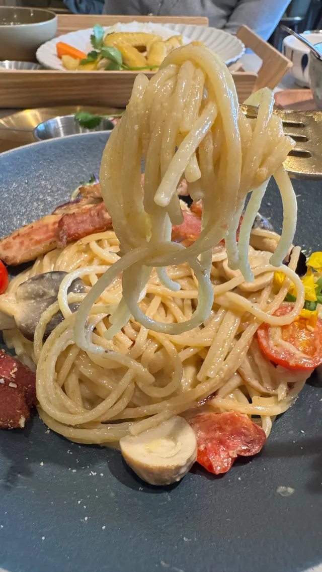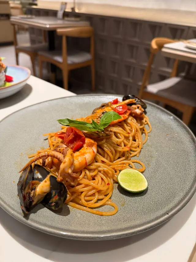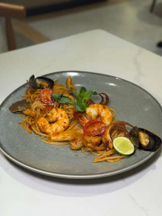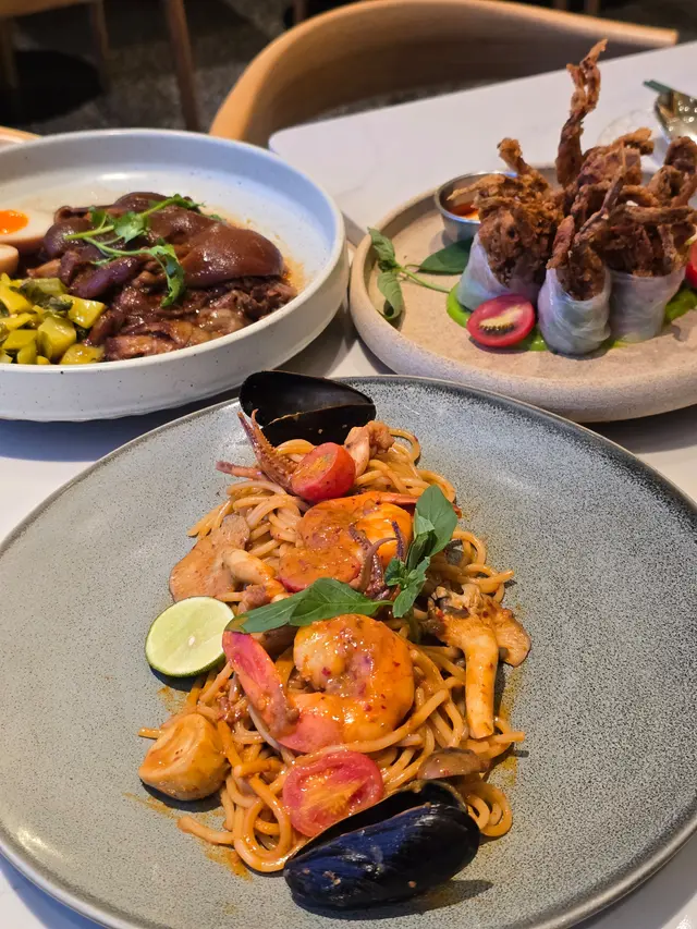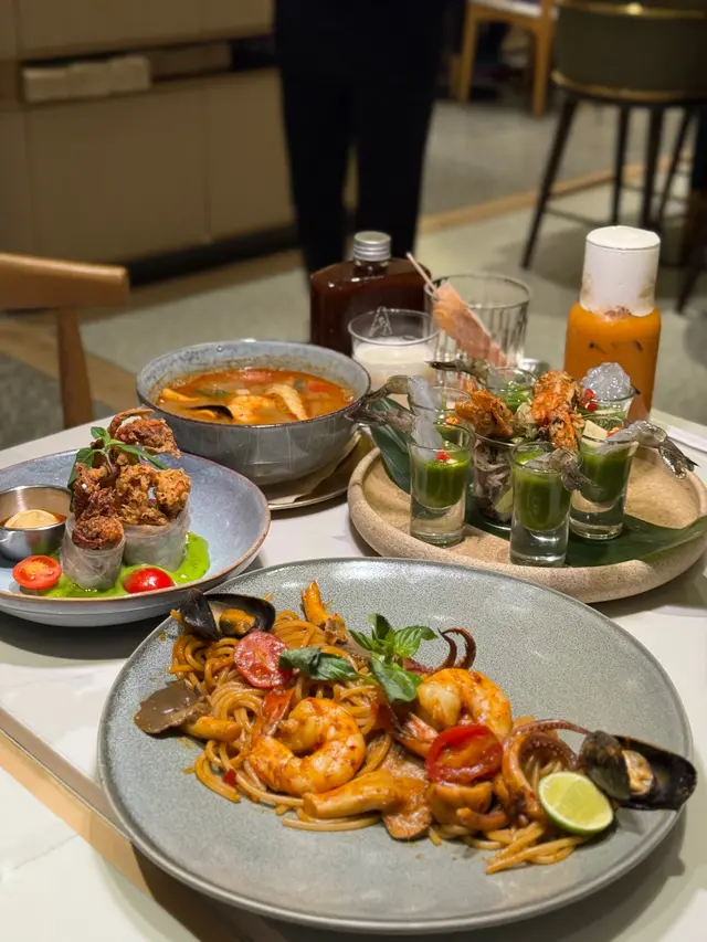 #MC帶你去銅鑼灣 📢價錢地址請看內文.真的「泰」好吃啦!一秒飛泰國喜歡泰國菜的一定要收藏這間!!.‹ 阿閒泰 › 主打傳統泰菜及泰西 𝗙𝘂𝘀𝗶𝗼𝗻 菜餚多款私房秘制泰國風味醬汁🇹🇭從泰國空運直送到港😻完美融合西式菜餚之中~.餐廳設計也很有質感🌟店內裝潢以薄荷綠色及白色為主添置滿滿綠色植物 清新帶異國風情餐廳更設有一面 大型落地玻璃窗😻可以遠眺 𝟏𝟖𝟎° 維港景色~.泰菜必吃 ‹ 泰式生蝦刺身 ›生蝦刺身用 𝘀𝗵𝗼𝘁 𝗴𝗹𝗮𝘀𝘀 盛載 相當吸睛🦐配上酸酸辣辣的泰式酸辣汁生蝦口感爽脆彈牙 沾滿酸辣汁🌶好開胃~.前菜小食 我選了 ‹ 脆炸軟殼蟹米紙卷配牛油果醬 ›透薄的米紙包裹著酥脆軟殼蟹🦀配上綿滑牛油果醬 口感豐富🥑再沾上泰式風味醬汁味道清新開胃. ‹ 阿閒泰虎蝦冬蔭功湯 › 有一人份量 超貼心💕湯中配料豐富 用料十足‼️有虎蝦 青口 秀珍菇 草菇等等味道香濃帶酸微微少辣 開胃又惹味🤤.主餐必點 ‹ 冬蔭功濃汁虎蝦意大利麵 ›配菜十分豐富‼️ 有虎蝦🦐青口🦪魷魚鬚🦑等虎蝦好大隻 又爽口彈牙意粉掛汁力不錯🍜 掛滿酸辣冬蔭功汁.甜品最推薦 ‹ 椰香芒果班蘭糯米飯 ›擺碟上已見心思 賣相好精緻😍班蘭糯米飯煙靭軟糯鋪上芒果、楓糖脆片及椰絲脆脆新鮮芒果 味道酸酸甜甜🥭搭配香濃椰汁 好滋味.最後用 ‹ 原味泰茶配自家奶茶雪條 › 完美收尾✨泰茶茶味濃厚 入口香滑☕️倒入香濃泰茶 搭配奶茶製成的雪條融化後可以保持泰奶味道~十分貼心💕. ‹ 泰式泡沫奶茶 › 也是人氣之選🔥上層椰奶泡沫醇厚幼滑 微微甜口感絲滑細膩而且茶底好香濃👍🏼值得一試‼️.─── ᴘʀɪᴄᴇ ───﹅ 泰式生蝦刺身 |𝗛𝗞$𝟗𝟖﹅ 阿閒泰虎蝦冬蔭功湯(一人份) |𝗛𝗞$𝟔𝟖 ⭐﹅ 脆炸軟殼蟹米紙卷配牛油果醬(3件)|𝗛𝗞$𝟕𝟖 ⭐﹅ 冬蔭功濃汁虎蝦意大利麵|𝗛𝗞$𝟏𝟑𝟖 ⭐﹅ 椰香芒果班蘭糯米飯|𝗛𝗞$𝟕𝟖﹅ 原味泰茶配自家奶茶雪條|𝗛𝗞$𝟔𝟖﹅ 泰式泡沫奶茶|𝗛𝗞$𝟒𝟔.…查看更多