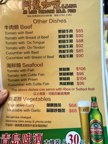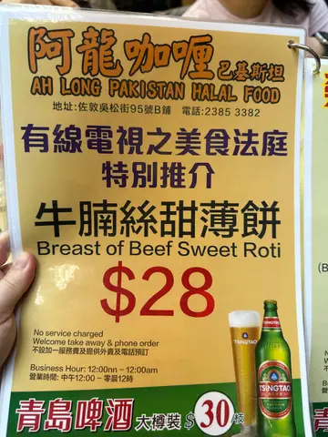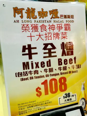 要數心目中嘅巴基斯坦咖哩,阿龍一定係其一。呢間由細食到大,以前細個成日挑戰最辣嘅咖哩,成日都係配蝦,辣到食唔到落去。雖則佢一直以黎都好大方,冰水任飲,但人大咗,都唔想再食到標晒汗又食唔到落去,又咩味都食唔到。同行友人食果個咖哩牛全燴話好正。而我就食最經典咖哩牛腩,今時今日,要經營一間老字號難;要一直保持住個味道更難。但阿龍做到了。今次都沒失望,食得多出面果啲馬來式椰汁咖哩,有時都會掛住呢啲用大量洋葱整嘅巴基斯坦咖哩,果種香甜,係同馬來式加椰奶嘅好唔同。