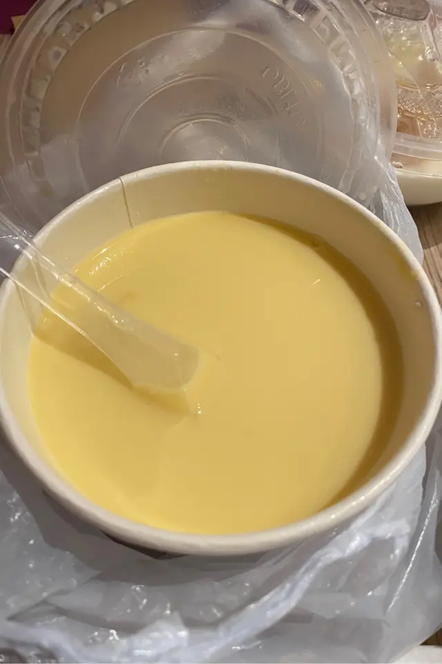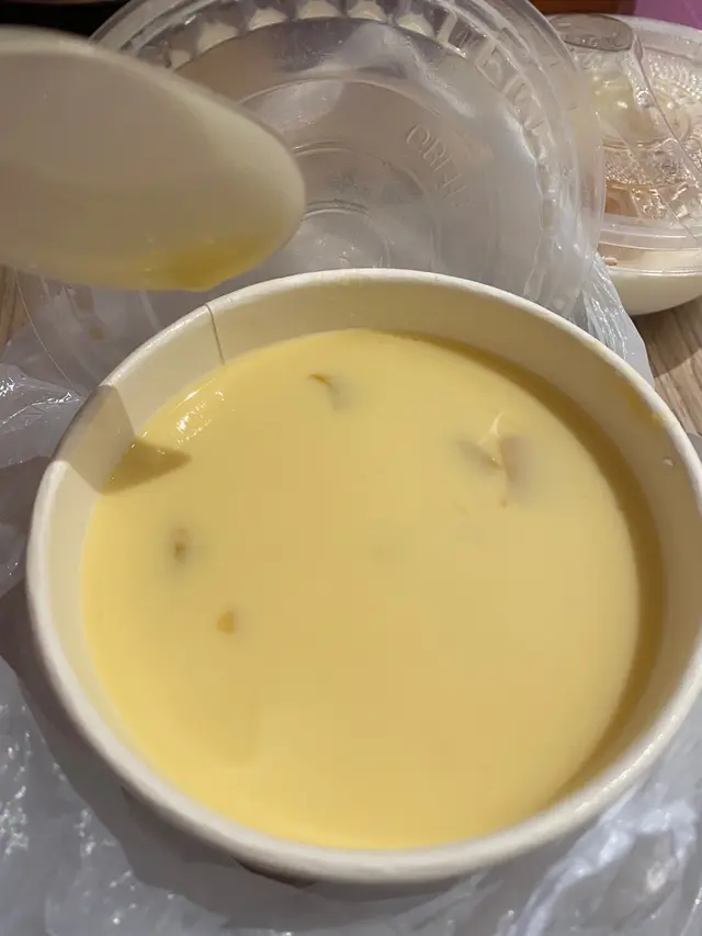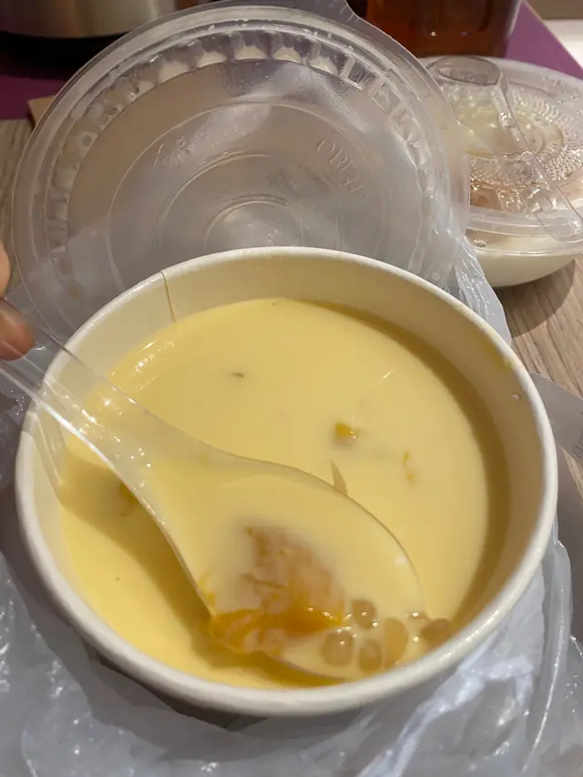 星期日晚上特意外賣自取一碗楊枝甘露一碗榴蓮3.6牛乳蛋白🥚店鋪位於天橋下,但不太顯眼,店舖內沒有太多客人,在門口觀察感覺環境亦頗為整潔。買回家後,立即打開享用,楊枝金露貌似很大碗😻但原來只有10粒芒果😿、30粒西米,大約一茶匙的柚子,其他就只有花奶和芒果汁,花奶比例較多,實在十分失望榴蓮3.6牛乳蛋白,有很多的榴槤和柚子,但是牛奶蛋白的味道相對較清淡,就算用上3.6牛乳🐄,味道亦不太濃烈查看更多