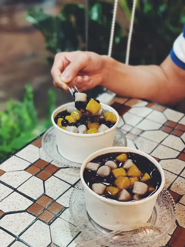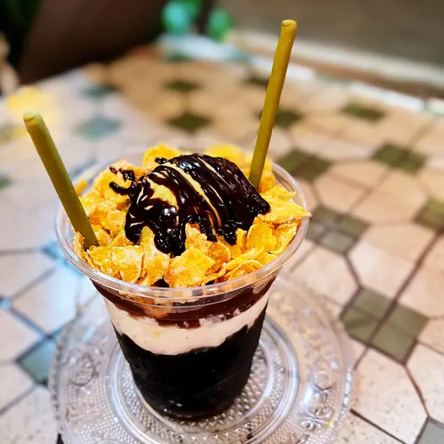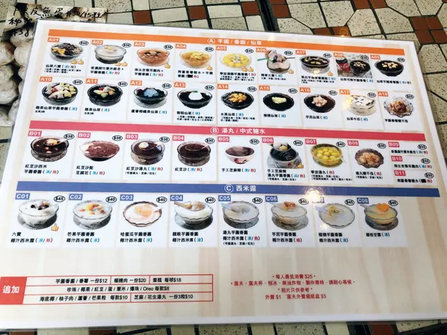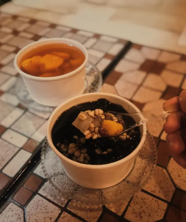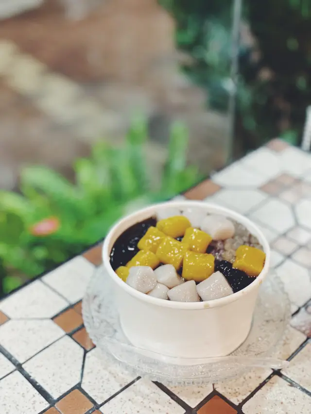呢度既甜品好有特色, 當中以Waffle最有特色, 另外仲有好多唔同款式既甜品添🍮 唔想食甜野既都有鹹食, 滿足到所有人😌 今次怕食Waffle太飽, 所以就食左我最愛既芋圓😍仙草八寶🧉($45)睇個名就覺得個甜品好豐富, 仲可以揀暖或凍添, 呢啲熱辣辣既天氣梗係食返個凍既爽下啦🧊 八寶既配料包括: 爽滑既仙草, QQ彈牙既雙色芋圓, 紅豆, 薏米, 珍珠, 西米同椰果🥥 呢啲配料全部覺身都有唔同既甜味, 所以都冇額外既糖需要落, 食完都唔會覺得甜得濟, 而且份量剛剛好, 食完啱啱好👍🏽黑白芋圓蕃薯圓配🍠 ($45)呢款就只得凍既選擇, 黑白既意思即係爽滑仙草配香滑豆腐花, 再加雙色芋圓, 紅豆同珍珠, 因為有豆腐花既關係, 相比起仙草八寶更加清爽😚呢度既裝修好有懷舊風味, 更加有啲未見過既玩具掛左係玻璃度🪀 就連枱面都係用左舊式茶餐廳既地磚砌, 係好有特色同埋打卡超好用😂 查看更多