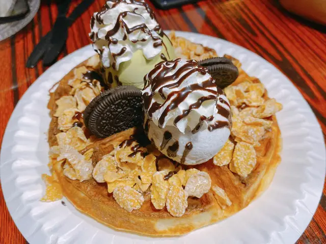 係網上見過厚cream嘅waffle韓國好多,諗住飛到就第一時間飛轉韓國去食,點知經過天后見到呢間糖水舖有!即刻拉我男朋友入去食!第一眼已經比彩虹個個吸引咗一定要嗌,黎到未食見到咁靚已經好開心,打卡一流!個餅底外脆內軟,切落去個下好surprise,原來裡面有水果😳個cream食得出係自己打,淡淡地再加埋Nutella 醬甜味岩岩好,切切下我自己都食咗一半。男友見我食得咁開心,叫埋朱古力黎試下,見個賣相幾得意。朱古力oero個個仲開心,每啖cream入面有朱古力碎,越食越停唔到口,呢個窩夫男友都食得仲多過我。.唔洗去韓國都食到巨型窩夫好開心!真係好有驚喜又好食😋另外店員服務好親切,我同男友都食得好開心!下次一定會再黎試埋個榴連窩夫😍查看更多