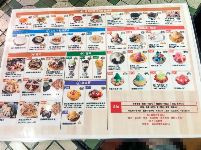 又係我啦!🤗 上次已經向大家推薦過呢度嘅秘製醬陳皮魚蛋、仙草八寶同法式焦糖燉蛋。咁點解又要寫多篇食評呢?就係因為我又試咗佢其他甜品🤣 同埋我真係成日過嚟食㗎!一想食甜品就會諗起呢度!呢度座位唔多,但枱與枱之間有一定距離。店舖有兩邊係落地玻璃,可望街景。每張枱都有支消毒搓手液,menu同點餐紙。又嚟睇下個menu啦!呢度除咗有甜品,仲有熟食!熟食方面,我推薦黑松露醬炒腸粉 & 蜜糖雞翼配薯條!因為今日好想食榴槤,所以叫咗個3.6牛乳燉蛋白併榴槤柚子肉 (凍)。朋友就想食啲凍野,就叫咗黑糖牛奶Oreo碎夾心棉棉冰。🍨❤️ 3.6牛乳燉蛋白併榴槤柚子肉 $48建議第一啖食燉蛋白先,因為牛奶味較淡,如果第一啖食榴槤先,榴槤味會蓋過牛奶味。榴槤分量好多,一啲都唔孤寒!😛 可以撈埋燉蛋白大啖大啖咁食!柚子好似用糖水浸過,不過都新鮮嘅。好食度:⭐️⭐️⭐️✨ (3.5/5)❤️ 黑糖牛奶Oreo碎夾心棉棉冰 $88Oreo雪糕加牛奶綿綿冰,面頭有棉花糖,朱古力脆脆&朱古力百力枝,淋上黑糖糖漿。綿綿冰細緻輕柔,綿滑幼細入口即溶,內層仲有好多Oreo碎增加口感。不過我個人認為整體有少少太過甜,朋友就覺得個甜度OK!好食度:⭐️⭐️⭐️ (3/5)餐廳推薦度:⭐️⭐️⭐️✨ (3.5/5)店員好nice,係充滿人情味嘅小店。食物款式多,質素一直都唔錯,衞生情況亦理想。唯獨冷氣經常開得太勁,有時會坐得唔耐忍唔住走🥶查看更多