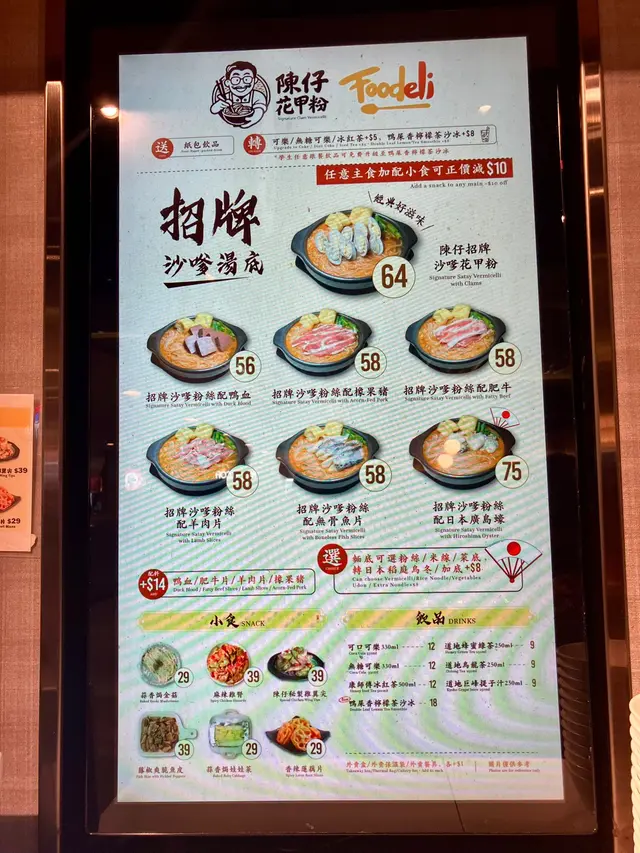 又到左德福美食廣場搵食,上次試過陳仔花甲粉嘅香辣湯底唔錯,今次就嚟試下佢嘅沙嗲湯底。落完單攞住飛仔等叫號,美食廣場一如以往嘅熱鬧,依然係一枱難求,隨意搭枱啦😅⭐陳仔招牌沙嗲花甲粉叫咗份沙嗲花甲粉再加肥牛片,面底有粉絲或米線選擇,亦可以加八蚊轉稻庭烏冬,上次就試咗粉絲喇,今次就試下米線啦。湯底好香,有花生醬味鹹鹹鮮鮮仲帶少少辣,入面仲有唔少生蒜同炸蒜,令到個湯底更香口。花甲大大隻幾鮮甜,我呢碗有九隻😋米線夠滑又爽口,整體感覺唔錯🤤⭐麻辣雞腎主食加配小食可以正價減十蚊,叫咗一份麻辣雞腎,雞腎碎上賣相一般。呢份雞腎都幾辣,辣椒籽超多,留返畀愛辣嘅朋友搞掂佢啦😆⭐香辣蓮藕片另外仲加咗份藕片,呢個香辣對我嚟講辣度就啱啱好,蓮藕片好爽脆,辣得過引。⭐蜂蜜綠茶麵食免費跟紙包飲品或者罐裝汽水,仲可以加八蚊揀新出嘅鴨屎香檸檬茶沙冰,是晚想飲下蜂蜜綠茶就揀咗呢款道地嘅紙包飲品😝眼闊肚窄叫太多食唔曬😅兩份小食大部分都畀曬朋友搞掂佢,哈哈,幾時有個包底嘅朋友都好重要。…查看更多
