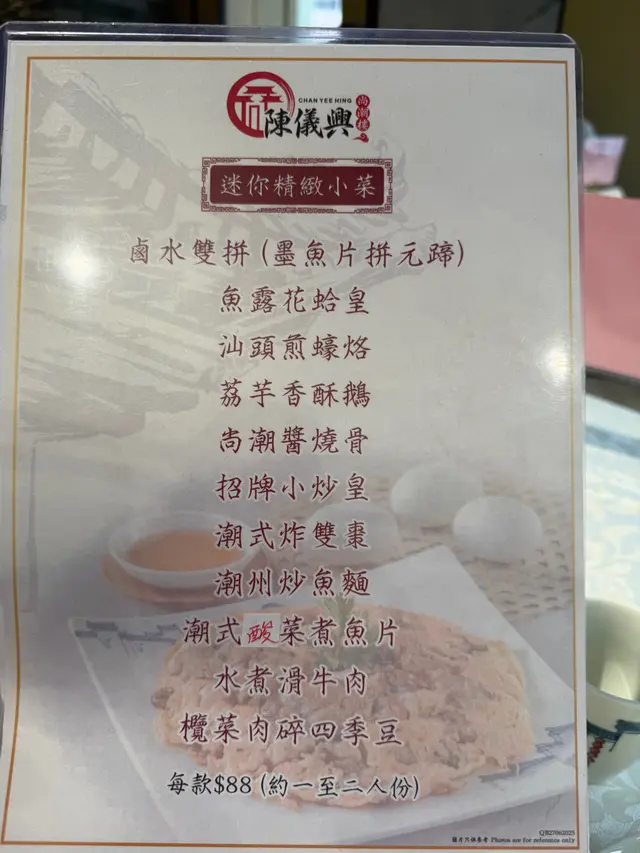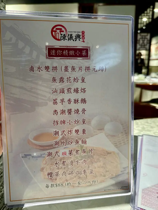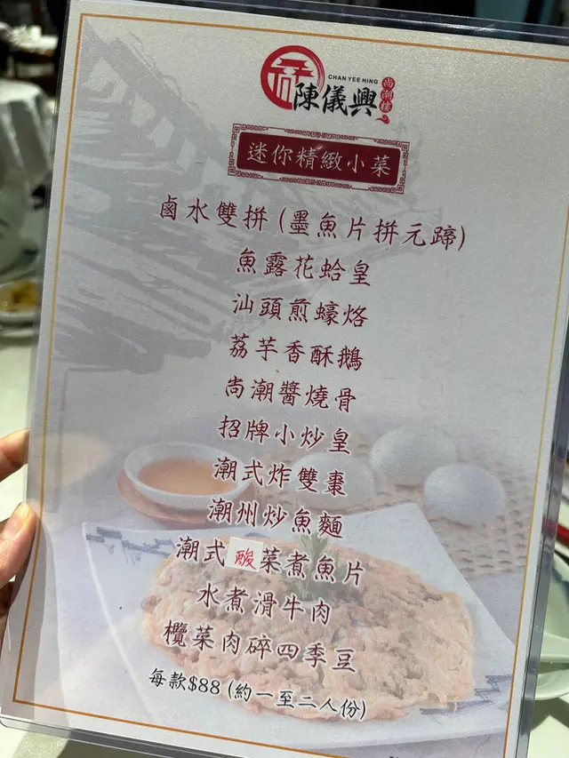 位於鰂魚涌的陳儀興尚潮樓,無疑是食客們心目中的一個美食天堂。這裡以其獨特的潮州風味和精緻小菜而聞名,特別是他們的迷你精緻小菜系列,每款皆以$88的價格提供,讓人不禁期待每一口的美妙滋味。首先登場的是精緻茘芋香酥鵝。這道小菜外皮金黃酥脆,咬下去時能感受到鵝肉的鮮嫩,伴隨著淡淡的茘芋香氣,讓人一試成主顧。鵝肉的調味恰到好處,沒有過多的油膩感,反而讓人感受到一種清新的口感,令人驚豔。接下來是精緻潮樓醬燒骨,醬汁濃郁而不過鹹,骨肉分離的質感讓人感受到廚師的用心。醬香在嘴中迸發,讓人每一口都忍不住想要再來一口。這道小菜的搭配真是天衣無縫,讓人感受到潮州菜的精髓。最後,滷水鵝肝(半份)是這次用餐的壓軸佳品。溫潤的鵝肝在口中入口即化,搭配特製的滷水醬汁,讓人忍不住驚呼其美味。每一口都是對味蕾的極致享受,讓人不禁想要再點一份。餐廳還贈送了咸菜作為開胃小菜,鹹香的口感恰到好處,為整體用餐體驗增添了層次感,讓人食慾大開。在飯前和飯後,餐廳會送上功夫茶,讓食客在品味精緻小菜的同時,感受傳統茶文化的魅力。茶香四溢,不僅可以清口,更增添了用餐的雅致氛圍。總體而言,陳儀興尚潮樓的迷你精緻小菜系列,無論是從味道、質感還是擺盤上都展現了高水準的廚藝。這裡不僅適合聚會,更適合獨自品味每一份小菜的美好。對於喜愛潮州美食的食客來說,這裡絕對是一個值得一試的地方。下次再來的時候,我會期待探索更多他們的創意菜品!…查看更多