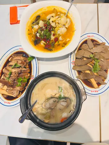 呢間熟食中心係日日都有好多人幫親,d野食係即叫即炒,超有鍋氣,價錢又好合理,d野食好新鮮,好足料🌟川味金湯酸菜魚我地揀左小辣,金湯底係比較香同酸口d,吾會好辣,d魚係煮到好嫩,入口即溶甘,下面既粉絲索曬d湯汁係超惹味,仲有好爽口既芽菜 🌟汕頭咸菜生蠔煲 呢個煲入面有好多隻生蠔,仲要每一隻都好肥美,一啖落去係好滿足,個湯底加左好多咸菜,飲落去酸酸甜甜,好開胃,加左咸菜既配菜令生蠔變到更加鮮甜🌟鵝件呢個菜式係必食,果然係店鋪既招牌,全部都係師傅幾日滷,滷到好入味,d鵝肉整到岩岩好,完全吾會老,下面仲加左入口即溶既豆腐,再淋上滷水汁,超好食,真係必食 🌟鵝粉肝我一直都好中意食鵝肝,見有就簡係要試下啦,個鵝肝食落去好粉,好香,仲有每一塊都好大塊,好肥美,加上醬汁,完全無任何既腥味,中意食鵝肝既朋友仔真係必試 …查看更多