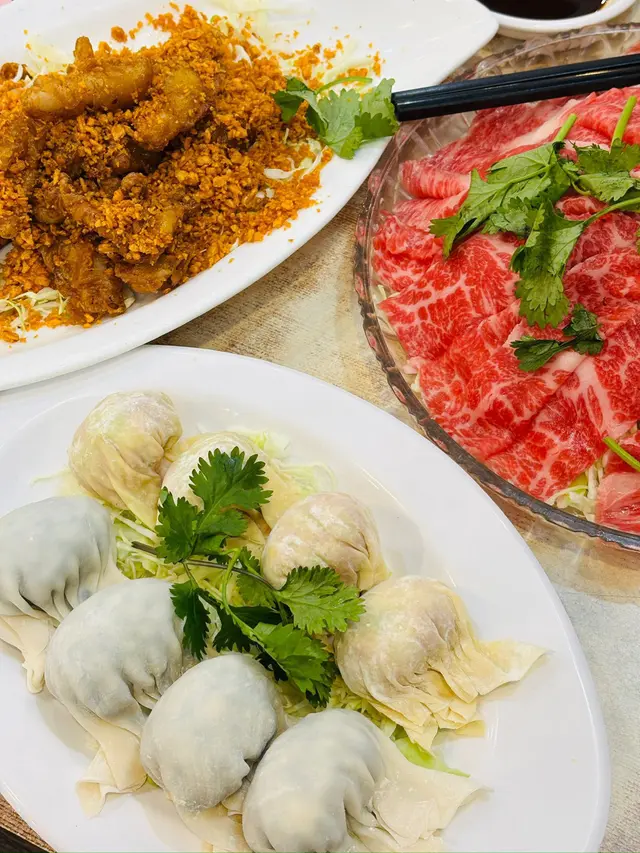 今次來到新蒲崗食新出嘅家鄉炆鴨煲~入到去都幾多人,環境類似港式大排檔嘅feel,一大班人食好有麻甩feel👍👍店員都幾友善,而且店舖免加一、免茶芥、免醬油費,真係價錢幾合理~難怪咁多人食😆家鄉炆鴨煲非常惹味,味道真係有少少返左鄉下嘅感覺😂店員話呢個煲係潮式傳統口味,係陳老太潮州家傳秘方,濃味得來唔會鹹,略帶少少甜味,薑蔥蒜都爆得香口~~半隻鴨2個人真係非常夠食,食完之後仲可以打邊爐!招牌手切肥牛(細) 第一次食到肥牛係爽口,真心打左個突,完全唔似平時食的肥牛….而且紋路都幾肥瘦均勻,牛味濃郁帶有油膩香溢~幾驚喜😛手打三寶丸有鯪魚球、豬肉丸、蝦丸,食得出三款丸都真係手打!而唔係拎貨😂粒粒都好新鮮~我個人特別鍾意食蝦丸,真係成隻鮮蝦撈埋蝦膠一齊打~自家製手包韭菜餃都有驚喜~韭菜餃皮薄餡多,韭菜餡Juicy,入邊冇咩溝肉,九成都係純韭菜~真心足料!手包松露雜菌餃都係大大隻脹卜卜,入邊全部都係菌類,都係冇咩溝肉,都係誠意之作非常足料~牛骨髓目測上到嚟都有10幾條,我哋大約烚咗5分鐘,食落啱啱好,都幾嫩滑!潮州手打牛丸都幾彈牙,中間都有汁,咬落去都要小心…差啲燙到🤣但味道係OK~似平時食開潮汕牛丸的味道👍另外再叫左老油條,佢係油炸鬼切開之後,再炸,放落火鍋鍋底~吸晒啲湯汁,食落算都夾…就咁食都香脆可口😂我地叫左碟娃娃菜,餐廳仲送左碟唐生菜~啲菜嚟晒啲油,打邊爐就冇咁油膩啦😆整體成餐除咗個煲底唔錯,最驚喜就係爽口的肥牛,同埋大大粒足料餃子最吸引我😬下次有機會都可以再encore~…查看更多