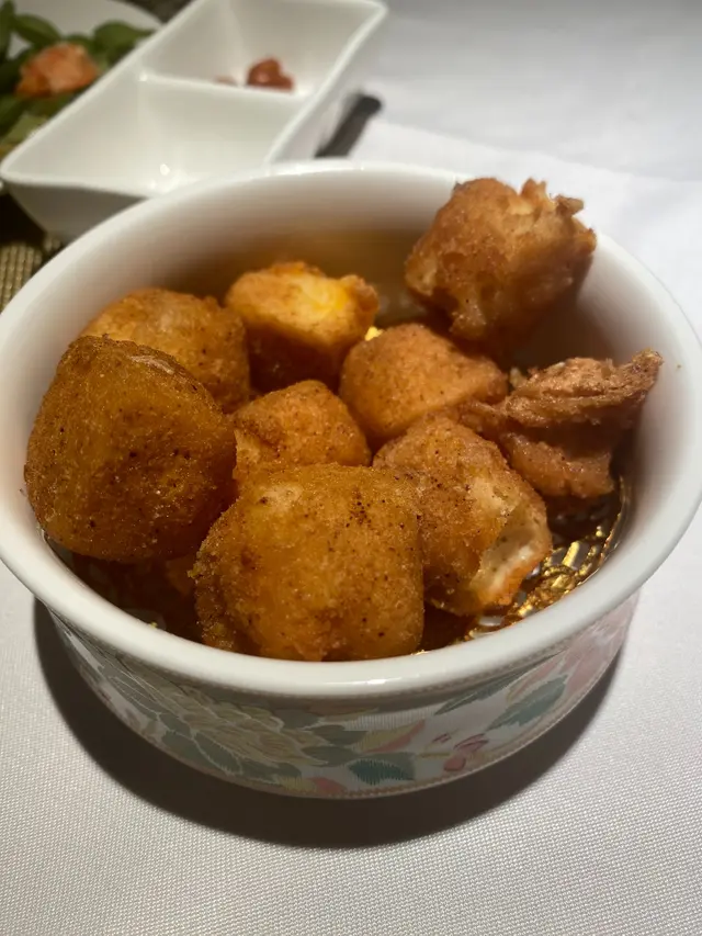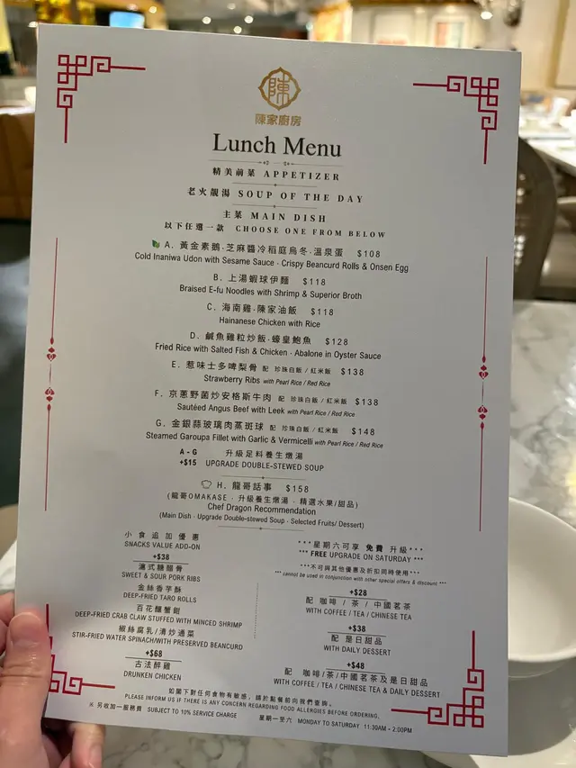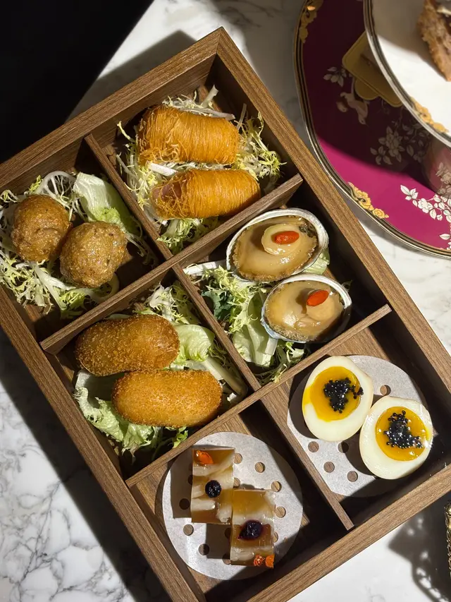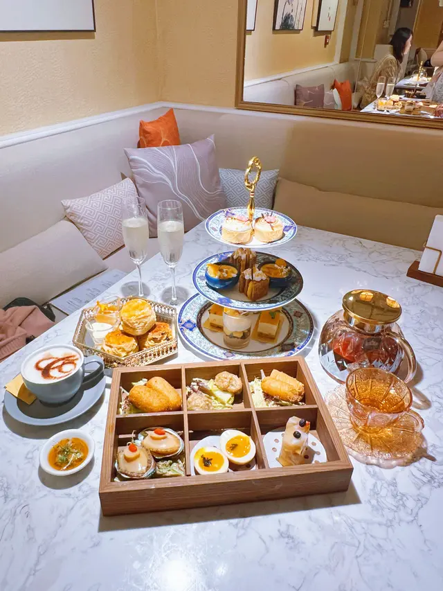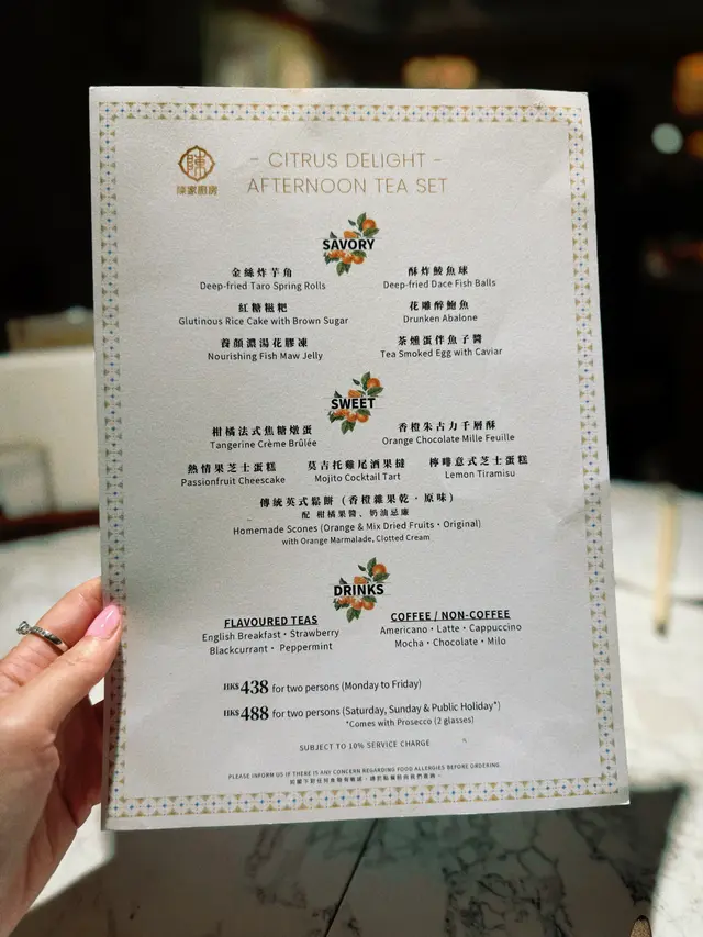 兩個月前同同事嚟到呢度食晏,當時下午茶主題係芒果主題,時間過兩個月後,主題轉咗變咗茶味Twinings主題,今日難得星期日抽時間同媽咪嚟呢度撐枱腳❣️中西合璧下午茶都算係第一次品嚐,東方鹹點有四款,西方甜點有五款,再配英式鬆餅及主題茶飲!環境同之前食午餐一樣依然一流,不過下午茶就少人啲。星期六日假期惠顧《午後茶語下午茶》仲有兩杯氣泡酒送添🍾🥢東方鹹點熱辣辣好好食:▪️一小籠蝦餃燒賣(精緻得嚟又大大粒喎)▪️避風塘黃金粟米磚(咬落大粒粟米🌽,味道幾好)▪️紫菜花枝丸(香脆紫菜配搭新鮮彈牙花枝丸)▪️茶漬魚子醬溏心蛋(茶漬溏心蛋好新穎啊,配搭魚子醬好奢華😍)🧁西方甜點有甜有咸又有酸,刺激味蕾:▫️川寧大吉嶺紅茶栗子脆筒(有原粒栗子肉,比較甜)▫️川寧仕女伯爵紅茶可可慕斯(好靚的朱古力慕斯蛋糕)▫️川寧洋甘菊茶桂花芝士蛋糕(花味都幾香,仲帶少少咸味)▫️川寧茉莉花茶靑蘋果奶凍(呢杯奶凍的青蘋果食落少酸,食完甜嘢之後瞬間解膩!)▫️烏龍茶白桃拿破崙(酥皮非常好食,內涵嘅烏龍茶cream及白桃肉食落唔太甜,而且好大件🤭)🇬🇧 傳統英式鬆餅[川寧伯爵茶及原味]配奶油忌廉•士多啤梨果醬(英式鬆餅都做得好靚)成個下午茶餐食完之後飽飽。甜品比平時啲下午茶大件,茶飲可選擇咖啡奶茶朱古力,既然呢個下午茶同Twinings做Crossover,當然揀番熱飯茶先符合主題🤭小妹媽揀咗玫瑰果洛神花、小妹則揀了煥光養顏茶(士多啤梨青瓜綠茶),一人一大壺絕對夠飲丫!整體來講,陳家廚房位置在酒店地庫,食下午茶時無風景欣賞,但可以專注地同朋友傾訴心事,分享日常,下午茶的份量比想像中多,以下午茶甜品來說已算不錯,唔知佢點芒果主題下年暑假會唔會重新再出呢🤔如果有就會好想去再食多次❣️…查看更多