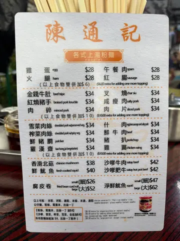 ⛴️🏖️🏞️平日星期五放假入長州放鬆走走!特地早上9:45坐高速船入長州,為的就是要食陳通記「沙嗲牛肉」早餐。陳通記「沙嗲牛肉」據聞在長州是必食,所以趁着入長州,便順道一試。去到陳通記才發現原來早餐是沒有套餐,全部都只有單點不包飲品。一碗沙嗲牛肉湯麵不包飲品,價錢$42。這個價錢在港式茶餐廳已包一杯餐飲,所以陳通記價錢比一般港式茶餐廳,收費算是比較高。叫了一碗沙嗲牛肉米通、一碗沙嗲牛肉麵和一杯凍奶茶。沙嗲牛肉米通和凍奶茶都算是陳通記招牌,好多人來到陳通記都是必點。🍜🍜🍜沙嗲牛肉米通形狀像長通粉,但比長通粉較幻和長身,口感煙煙韌韌。沙嗲湯底濃郁,帶有少許微辣,味道不錯。🧋🧋🧋原先掙扎飲品叫咖啡還是奶茶,最後問了侍應。侍應推薦奶茶,說是陳通記奶茶比咖啡出名。飲了半杯凍奶茶,我說就覺得一般,沒有特別,而且味道偏甜。…查看更多