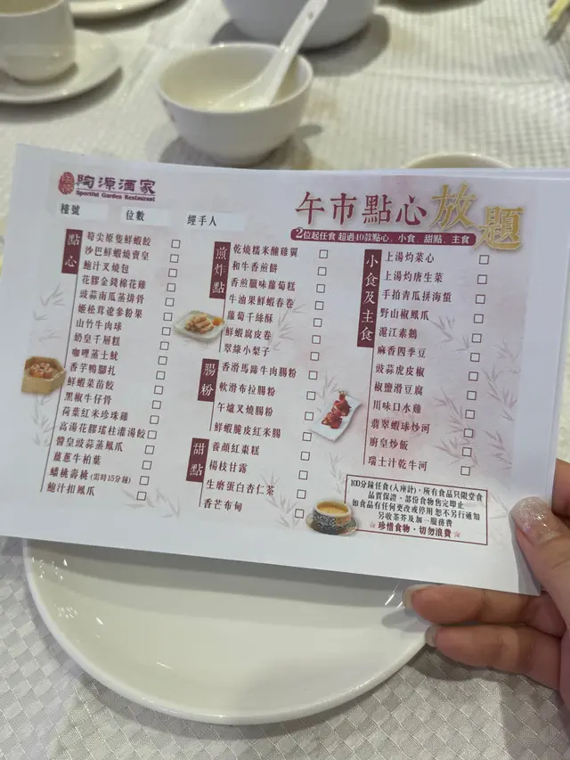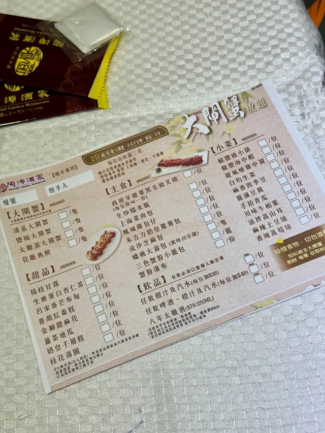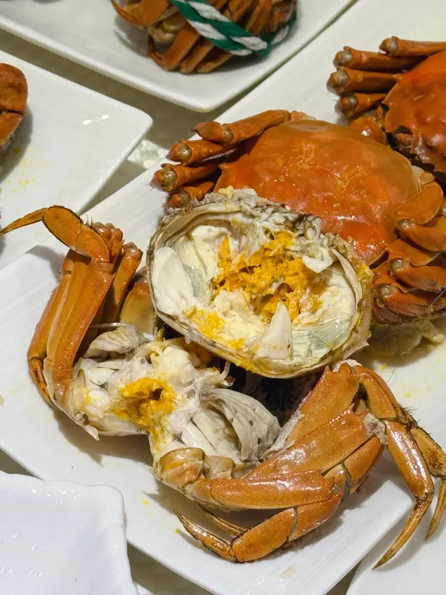 大閘蟹季節又到了,這次來到陶源酒家食大閘蟹放題,價錢$528,限時2小時任食大閘蟹,另外還有片皮鴨,更加送特色三盛:▪️鮑汁扣原隻鮑魚伴椎茸▪️蟹粉瀑布搭配上海麵•窩巴•手抓餅▪️蟹肉椰菜粉絲等還有多款前菜、小菜、主食和甜品可任食🦆片皮鴨2人份都好大碟,皮脆肉嫩,搭配香蔥、青瓜絲和餅皮,鹹鹹甜甜好惹味🦀大閘蟹主角大閘蟹約3-4両,煮法可選擇4種▪️清蒸大閘蟹▪️鹽焗大閘蟹▪️太雕蒸大閘蟹▪️花雕熟醉我最鍾意清蒸,可以保持到原汁原味,隻隻都好多蟹膏,鮮甜又甘香當晚整體上菜速度都尚算快,最後當然要食埋甜品,除了必吃嘅薑茶配湯圓、還叫咗香芒布甸、楊枝金露、奶皇千層糕,食得好滿足🎁優惠全攻略🧑🧑🧒🧒家庭優惠 - 買2位,免費1位1.2米或以下小童🧑🎓學生優惠 - 全檯可免$58.8加一服務費🎂生日優惠 - 全檯免費升級可任飲啤酒汽水👴樂悠卡優惠 - 持卡者可免茶芥及3位或以上贈送太雕一壺*以上4個優惠更可同時享用,需出示有效證明*…查看更多