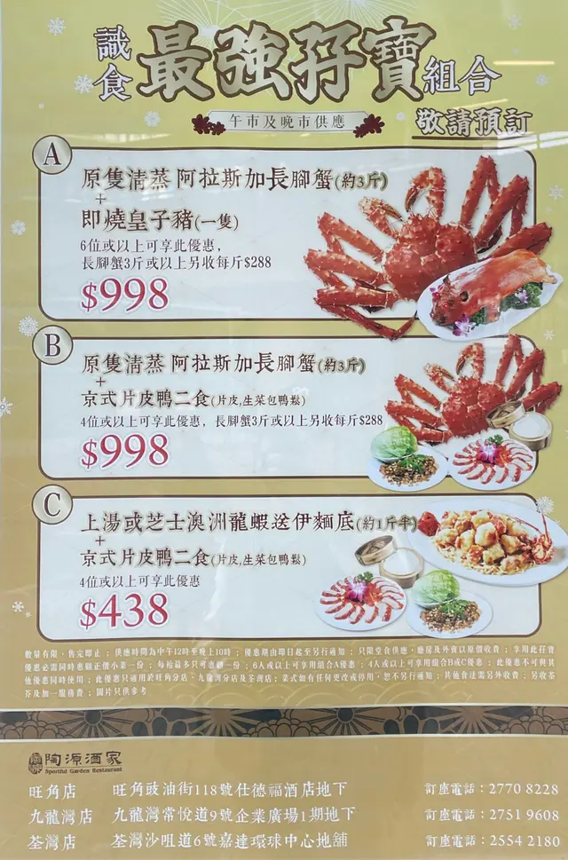 陶源酒家 (荃灣) 網址: https://s.openrice.com/QrbS0awi600 地址: 香港荃灣沙咀道6號嘉達環球中心地舖 電話: +852 25542180