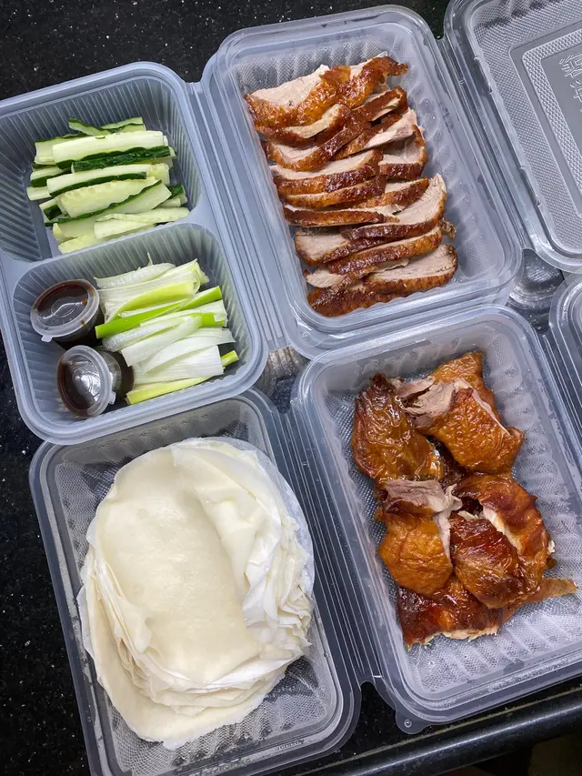 早幾日玩OpenRice快閃遊戲,幸運咁拎到$10 Rice Dollar,就睇吓有咩著數餐飲券啦!見到陶園酒家原價4百幾蚊片皮鴨,只係需要$108就可以外賣返屋企食,平時外賣炒粉麵飯就食得多,今次有啲新意 - 試吓外賣片皮鴨啦!4個外賣餐盒有兩盒鴨肉,全部大大塊,一盒主要係皮,另一盒就肉為主,一盒青瓜、京蔥同醬汁,仲有一盒餅皮,值得一讚係每塊餅皮都用紙分開,唔怕痴實。片皮鴨當然要熱食先唔會覺得成口油,所以我蒸返熱啲餅皮同埋焗一焗鴨肉先開餐。餅皮有18塊,兩盒鴨肉加埋係有20幾塊,其實就咁食片皮鴨,一個人食4,5件都幾漏,所以個人覺得都有3-4人份量,$108嚟講係非常非常抵食👍🏼,不過一定要整返熱,咁就同堂食冇咩分別喇!查看更多