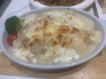 住這小區常來這商場,店子寬敞好坐所以今天選了,由於不大食只叫了兩道菜。正是冬季比較冷的日子,進店後不久即送上每人一碗大熱例湯,可見招呼的確窩心,第一道菜是梅菜扣肉煲($75),煲仔菜仍寒天最佳之選,煲熱騰騰的來也滿滿份量的,肉是上等五花肉,大部份肥廋適中,梅菜也可囗不太鹹正合長者口胃(普通人或會嫌淡),配以幾顆嫩滑白菜仔正好中和肥腻,整個煲來說除肉的脂肪外油份不多,減輕了邪惡感。最後來的星洲炒米($58)鑊氣很夠料也多,其中有炒疍、銀芽、火腿絲和蝦仁,很微辣但可惜味太淡帶不出鮮香,寄望廚師多加注意否則下次要叫加鹹,這頓輕食晚餐三人算夠吃也不貴絕對是區内茶餐廳首選,但位處商場頂樓就要大家多移玉步了。…查看更多