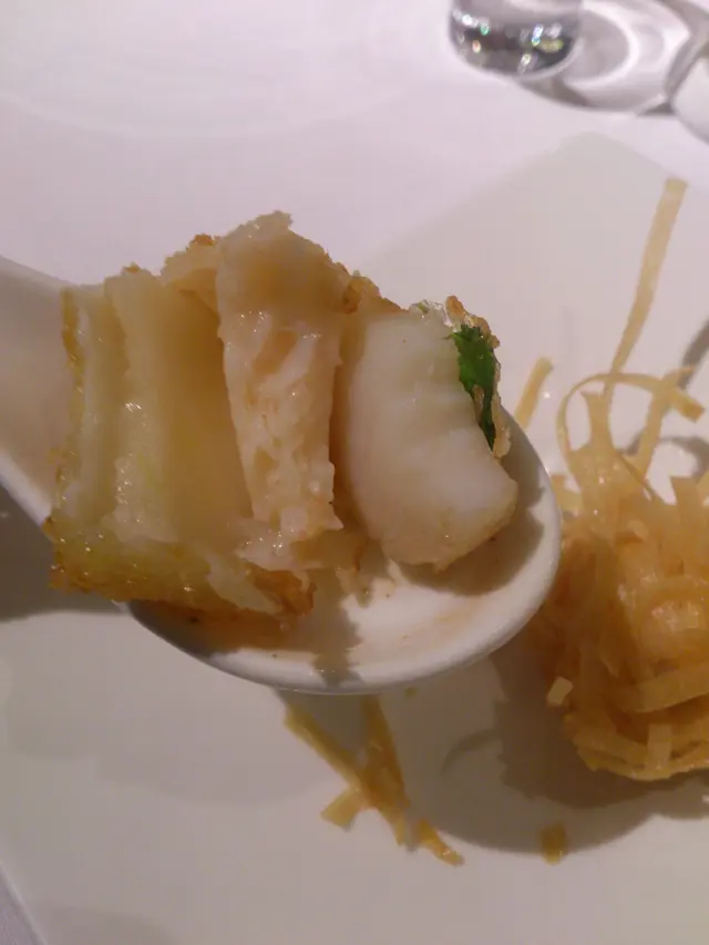 Loong Toh Yuen is a lovely Chinese restaurant located in the heart of 1881 Heritage by the courtyard.Inside, there is nice oriental decor which expats would love.At the moment, they are doing special Hairy crab dishes as well as their regular menu.We had some chef signature dishes and some hairy crab dishes.★☆★☆★☆★☆★☆★☆★☆★☆★☆★Tossed green bamboo and black fungus with hairy crab roe $98:We started off with this dish which tasted great with or without vinegar and the green bamboos were incredibly crispy and juicy. The black fungus and green bamboo were heavily flavoured with a delicious sesame oil taste which was then tastier with the crab roe.★☆★☆★☆★☆★☆★☆★☆★☆★☆★Roasted peking duck served with chinese pancake $438:I love duck with pancakes but in Hong Kong they eat them differently because they just serve the skin.At this place, the duck skin was divine because it was crispy and there was not much fat on it which made it sensational with pancakes, cucumber and the sauce which is the key to a perfect pancake.★☆★☆★☆★☆★☆★☆★☆★☆★☆★Stir fried egg white with black truffle and hairy crab roe:The egg white had a nice chunky coarse texture which mimicked the crab meat nicely while the hairy crab roe and black truffle complemented it nicely.★☆★☆★☆★☆★☆★☆★☆★☆★☆★Pan fried spare ribs with strawberry and champagne sauce $198:As they always say Champagne and strawberries!!!Here it was spare ribs in champagne and strawberry sauce which was really luxurious and a nice treat for people who don't drink champagne.Apart from spareribs, their champagne prawn dumplings are also famous.I am not good with eating Chinese spareribs because they are cut differently, neverless the sauce was beautiful and dreamy with the champagne flavour.★☆★☆★☆★☆★☆★☆★☆★☆★☆★Fried homemade noodles with wild mushroom and spicy minced pork $168:When the noodles came, I thought they were stir fried flat rice noodles because each strand was perfectly uniform and did not look like they were sliced with a knife.Anyway, I really liked it because it was tasty with earthy mushrooms and a hint of spiciness from the pieces of pork.★☆★☆★☆★☆★☆★☆★☆★☆★☆★Fried rice with vegetables wrapped with Lotus leaf $148:The fried rice was vegetarian which suitable for vegetarians.★☆★☆★☆★☆★☆★☆★☆★☆★☆★Sweetened almond soup with glutinous rice dumplings $48:After the mains we had almond soup which was creamy with a strong nutty almond taste.There put bamboo piths in it which had a texture strikingly similar to birds nest.★☆★☆★☆★☆★☆★☆★☆★☆★☆★Chinese petit fours:Ended dinner with cashew pastries and chrysanthemum jellies.★☆★☆★☆★☆★☆★☆★☆★☆★☆★…查看更多