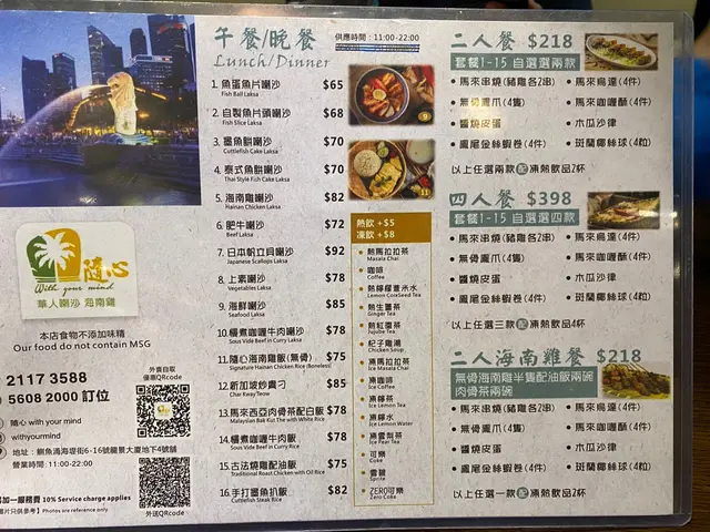 隨心華人喇沙海南雞 (鰂魚涌) 網上訂座即賺Rice Dollars 網址: https://s.openrice.com/QrbS02YqD00 地址: 香港鰂魚涌海堤街6-16號龍景大廈地下4號舖 電話: +852 21173588