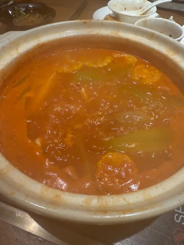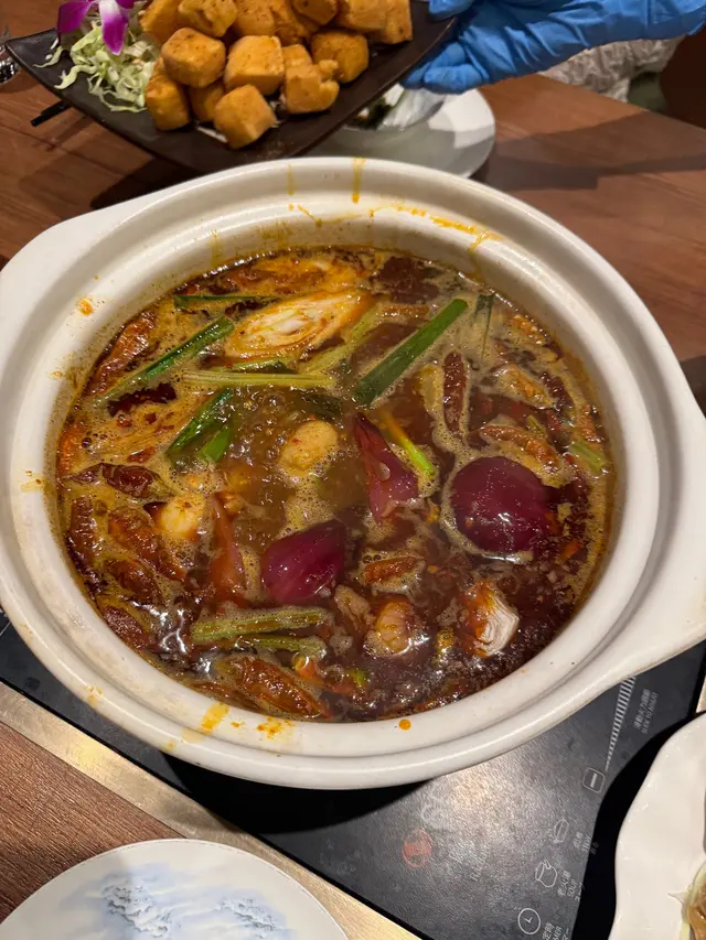 銅鑼灣呢間海景雞煲火鍋,絕對係驚喜之作!坐低一刻已經覺得維港夜景好靚,伴住熱辣乾鍋雞煲,滿分。雞煲係靈魂所在,一上枱香氣撲鼻,秘製醬汁濃郁惹味,辣度可以自選好貼心。雞件嫩滑入味,啖啖肉汁鎖得住,連平時唔鍾意食雞皮嘅我都忍唔住食清光!食完雞煲加湯打邊爐,牛頸脊新鮮脂肪分布靚,淥十秒入口肉味夠晒,手打蝦丸爽彈鮮甜,仲有吸湯力強嘅響鈴卷,鹹蛋黃魚皮,索盡精華超滿足。服務生手腳勤快,加湯收碟好主動。人均消費$500對住無敵海景食到高質火鍋,CP值爆燈!已經約定朋友下次一定再encore~…查看更多