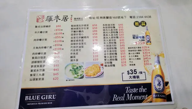 好幾個月冇嚟旺角砵蘭街,諗住去幫襯咗好多年嘅「新泉發」食潮洲嘢,忽然發現舊址變咗間粥鋪,以為執咗唔做﹗失望之餘,離遠見到豉油街口有間新食肆,行過去睇,見到門口企咗個老伯伯伙記,好熟口面,同佢傾咗幾句,先知三個月前「新泉發」原班人馬搬咗嚟呢間「雁來居」﹗差啲走漏眼,即管入去試吓。新店裝修光猛新淨、簡單舒服,廁所乾淨冇味,非常難得,勝過好多餐廳。我哋得兩丁友,點咗滷水鵝片、韮菜豬紅、鹹酸菜魚同潮洲粥,再整支藍妹。鵝片肉嫩入味,韮菜豬紅爽口,醎酸菜好夠味,佐粥一流,食到舊店嘅傳統味道﹗一路食、一路同幾個伙記有傾有講,知道其中一個阿伯由「新泉發」開店做到依家,打工超過三十年,好忠心喎﹗呢啲具風味嘅小店,賣少見少,絕對值得支持,我一定會再嚟,仲會帶多幾個朋友嚟,試多幾味菜。查看更多