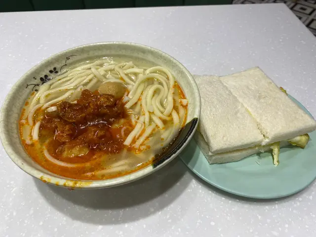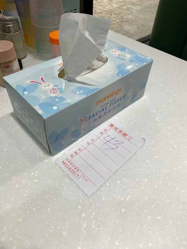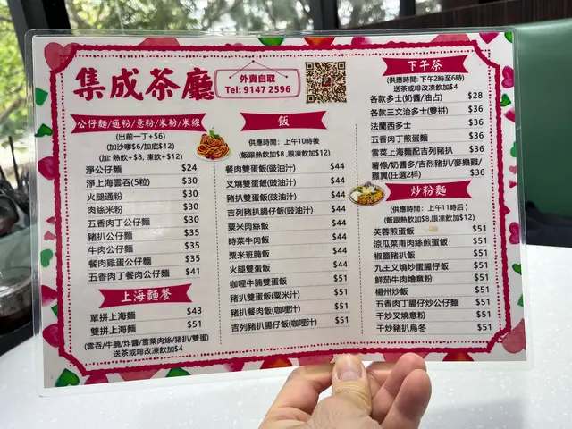 屋村茶餐廳食個早餐見到冇咩人就入去坐入到去自助揀位坐見到佢有個H 餐$43 五香肉丁魚蛋粗麵配蛋治但凍飲要加$4就試下啦餐廳算係咁少數會有成盒紙巾放喺餐枱上任用入座後店員會主動approach 客人落單態度亦有禮貌落單後等咗五分鐘就上菜蛋治入面塊蛋係炒蛋,有點油五香肉丁魚蛋粗麵有四粒魚蛋粗麵其實係烏冬五香肉丁粒粒都係肉唔係肥膏好彩餐廳通風好,有風扇有冷氣不置於熱到要叫凍飲可以慳返$4整體而言用餐經驗唔錯店員有禮,食物正常發揮不過佢只收現金會再幫襯…查看更多