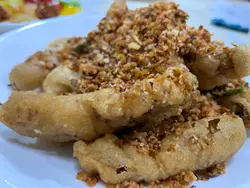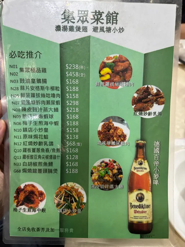 集眾飯聚這間店比想像中受歡迎, 其實地點還好, 沒有很旺, 但生意相當好, 當天還好朋友預先訂位, 因為七時到達時見到有人walk-in但沒有位可以食飯而掃興而回, 所以強烈建議一定要預約, 因為星期一至五都相當多人光顧。謝謝店家安排了大張大桌給我們, 環境還可以, 衛生程度尚可。先吃一碟花生當小食, 相當脆口, 沒有油膉味, 很香, 吃完更見肚餓。其實價錢不算便宜, 比大排檔再貴一點, 我們八人, 每人大約350元左右, 可以的。我覺得他們的咕嚕肉相當好吃, 脆皮是很薄的, 但是是咬到它的存在, 恰到好處, 不會覺得它厚或韌或咬, 而是很適中, 這已經不容易拿捏。而且只有肉, 沒有骨, 食用很方便, 不用吐骨頭, 亦不怕有碎骨。而且味道相當好, 酸甜剛剛好, 很開胃。碟上亦沒有多餘的醬汁, 很專業。吃得出豬的肉質很好, 不會吃到一口肥油, 而是像黑毛豬般是很嫩, 但不油膩的豬肉。這道菜實在相當出色。一百四十元覺得可以接受。我們還點了薑蔥桶蠔, 大約十隻, 八百元, 比較偏貴一點, 但相當好吃。蠔外皮軟軟嫩嫩的, 有咬口, 但不過厚, 有存在感。蠔味相當濃郁而不腥, 而且很大隻, 超滿足, 難得那麼好吃。而且煲內的薑都煮到很夠身, 不會嗆辣, 但是有薑香, 好吃得很。蔥可以再略煮, 讓其更入味和去掉青味。蟶子一隻八十元, 算可以, 因為很大隻, 可能溝通上有誤會, 來到時是豉椒炒, 都好吃, 有吃出蟶子的鮮味, 肉嫩, 不韌, 沒有毀掉食材, 很不錯。有吃出海鮮的咸香, 好吃。我都沒有見過這麼大隻的蟶子。金沙鮮魷都很好吃。最喜歡它的咸蛋黃醬完全充份包著魷魚, 很夠香, 但又不會過咸, 這道菜是必點的。而且這道菜的上菜速度很快, 是第一道上的菜, 還熱騰騰的, 非常出色。可說是我吃過最好吃的金沙鮮魷。魷魚煮得很好, 沒有變韌﹑變橡膠, 好吃。其實不怎麼會吃出魷魚的味道, 因為金沙實在太搶, 但是是相當好吃的。小炒皇都很不錯, 因為它有芋頭, 炸得很脆很香口, 不只是只有韮菜的沈悶版本。除了芋頭外, 腰果我都相當喜歡, 為這道菜加分不少。我們還點了豉油鵝腸, 豉油味不過咸, 鵝腸是有味道的, 不是淡而無味, 鵝腸吃起來亦很嫩, 這道菜都算是可以, 但跟之前的金沙鮮魷和咕嚕肉相比, 是後者比較出色和搶眼的。菜心牛肉: 還可以, 我覺得牛肉可以再薄一點點, 咬起來斷口性會更好。雲耳和菜心是正常發揮。上菜速度還可以, 但脆皮炸大腸等了很久才上桌, 而且魚香茄子也是, 可能生意實在太好, 有漏單, 但都可以接受, 建議自己要核對一下點了的菜, 以免白等。脆皮大腸我覺得有點乾和韌, 即食都不像是即炸的, 吃起來不太夠熱, 而且底下墊菠蘿我個人覺得風馬牛不相及。可以提供更多的甜醬讓我們沾著吃更好, 因為單吃的話偏乾一點。魚香茄子: 最大的優點是熱騰騰, 是燙口的, 很好。但茄子比較是挺身那種版本, 而不是炆到軟糯那種, 喜好因人而異。這版本是加了咸魚的, 如果不喜歡咸魚味道的人可以先跟店員溝通一下看看能否不加咸魚。這道菜是挺適合拌飯的。最後還點了雞, 店家靈活讓我們半隻招牌雞和半隻炸子雞, 還包括了很香脆的炸蝦片和雞什, 挺豐盛的。炸子雞的皮很香脆, 又薄, 沒有甚麼油脂, 好吃。整體上很不錯。雞肉的份量也多, 八人吃都飽飽的。而且用餐環境舒適。…查看更多
