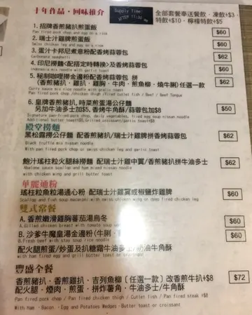 我是第一次寫食評,這間我不得不寫!一個下午餐餐要48元,出前一丁要加4元,轉豬排要加6元,凍飲加3元,那麼到底48元的餐是包了什麼?! 是一塊很薄的午餐肉和榨菜肉絲!還有一杯非常不好喝的冰奶茶! 其實在香港地奶茶難喝真的很難,都算!最重要是這間餐廳完全是只想賺錢,一塊薄到不得之了的午餐肉已經可以看出他們多想賺錢!你貴不要緊,但起碼食物要有質素,食物沒有質素,又貴,為什麼還能生存在這個社會上?十萬個不明白!