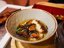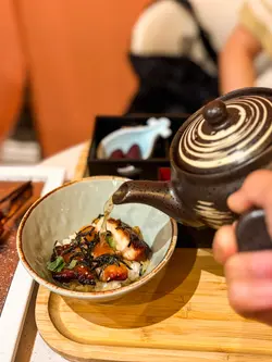 這間新開的日本餐廳位於銅鑼灣時代廣場B2樓,是來自日本名古屋逾120年歷史的百年老店,主打以日本三大土雞的名古屋交趾雞入饌的雞肉料理,品牌擁有自家農場養殖130日,雞肉特別細緻嫩滑,而蛋黃特別香濃。雞肉三吃定食 - $158採用名古屋交趾雞,塗上秘製醬油,慢烤至金黃且逼出甘香的油脂,有三種不同滋味。首先,原汁原味;然後,加入蔥花、芥末、海苔及鹽昆布;最後,加入高湯製成茶泡飯。鮭魚籽親子丼 - $128沿過用百年創業秘方,用秘傳醬汁燉煮名古屋交趾雞,燉煮得好入味,質感如走地雞般緊實有彈性,澆上滑溜的半熟蛋帶出蛋香,新潟米撈上醬汁鮮味香甜,還有爽脆爆汁的三文魚籽。追加定食套餐 +$38紀州梅乾三小碟有一口紫甜番薯、胡麻豆腐及紀州梅,而膠原蛋白雞丸子湯,湯色清澈而不膩好鮮美。炸雞翅(甜醬油) - $48/兩隻日本調製炸漿金黃酥脆而不膩,採用香草美水雞,咬開保留豐富的肉汁好柔軟。雞肉串燒(照燒醬) - $28/串軟嫩多汁的雞骨塗上照燒醬,有濃郁的醬香味。…查看更多