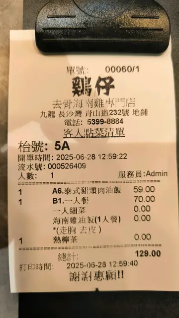 今次嚟到深水埗 雞仔去骨海南雞專門店,主打去骨海南雞同多款東南亞風味小食,價錢親民,份量唔欺場,唔少街坊都會專登嚟外賣或者堂食快快食完。🐷 泰式豬頸肉油飯 $59豬頸肉炭香味濃,切片厚薄適中,食落彈牙唔韌,配上酸辣泰式醬汁提味,幾惹味。油飯粒粒分明帶雞油香,唔會太乾,整體幾有驚喜!🐔 海南雞油飯 一人餐(配細菜+熱檸茶)$70去骨海南雞方便食,雞肉滑溜冇雪味,雞皮薄薄一層夠嫩,仲帶雞香;油飯香口唔漏,夠晒入味。配菜當日係清炒唐生菜,爽口不油。熱檸茶香濃夠檸香,少甜啱晒解膩。無論你係海南雞迷定係鐘意食泰式燒味,呢間店都係抵食之選,快靚正又唔傷荷包!…查看更多
