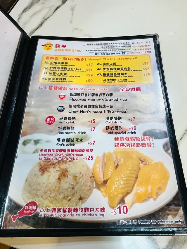 長沙灣雖然食肆林立,但現今很多餐廳又貴又唔飽,更唔一定好食。路過雞仔,被他那謙虛的名吸引入去(周街都係x哥x爺x姨x叔命名的餐廳店舖,鄉土味豪氣十足,欠缺港味,我就是沒興趣)。平日傍晚5:55入座,餐廳已1/3滿,到了6:15,已經8成滿,可見餐廳的確吸引街坊。我叫了海南雞飯和奶茶。奶茶不算好,但飯餐和例湯卻是精美。雞肉嫩滑,份量足夠。可選油飯和白飯。附上豉油、蔥油和好好味的甜辣醬(我唔知佢叫咩名😆),呢碟飯我已經好滿意。仲有蟲草南瓜湯做例湯,味道適中。侍應姐姐們都好有反應,易溝通。桌面餐具乾淨。$57有飯有湯,加$5有熱飲,價錢實惠,難怪多人幫襯。我會再幫襯。查看更多