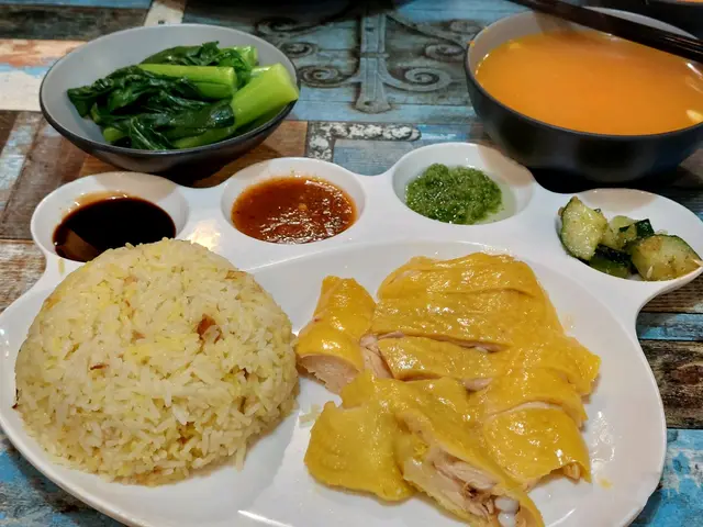 食客熙來攘往,都時間坐滿人。叫了招牌海南雞飯、元蹄飯。海南雞肉不算鞋,亦不滑。雞肉淡而無味,不算肥。伴著的醬料味道沒有特別好,正常吧!元蹄不是充滿肥脂果種,皮薄薄,肉算軟淋。的確,食物賣相是不錯,但質素不似如期。查看更多