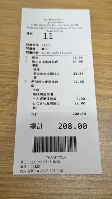 粉嶺中心開咗「雞少雞飯」啱啦,我最鍾意食雞,等我過嚟食吓先試勻晒佢哋嘅招牌菜首先一定要讚個新加坡海南雞配蝦湯滲滲個湯底鮮甜麵質吸盡蝦湯精華海南雞依然保持水準嫩滑得嚟雞皮爽口去骨海南雞飯雞皮泛住啲啲金光肉質嫩滑到用筷子輕輕一篤就分開最正係個黃油飯粒粒分明又沾滿雞油香小食方面個炸蝦餅同鳳尾蝦真係不得了熱辣辣上枱仲keep到肉汁環境雖然唔算豪華但零服務費+上菜快最後飲埋個清甜椰青完美解決今日嘅選擇困難症!