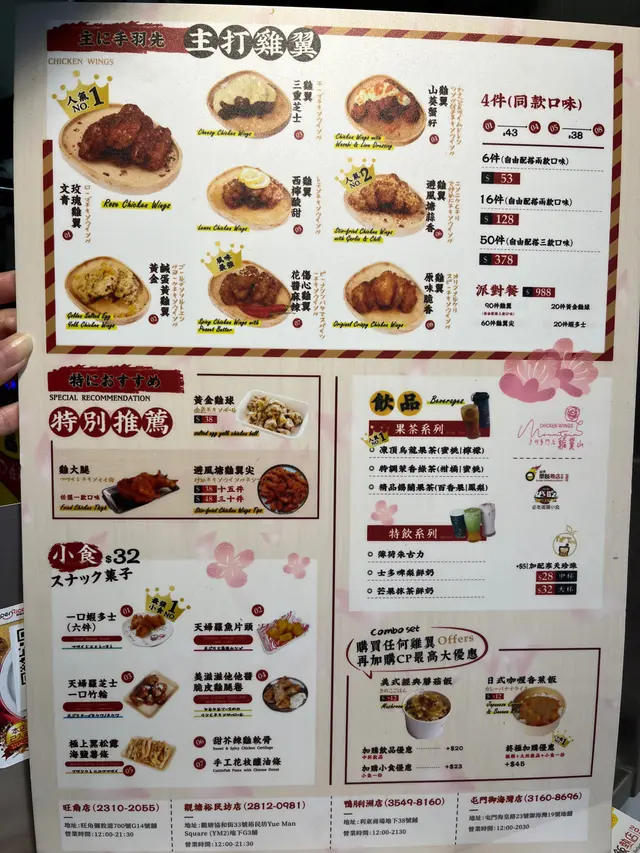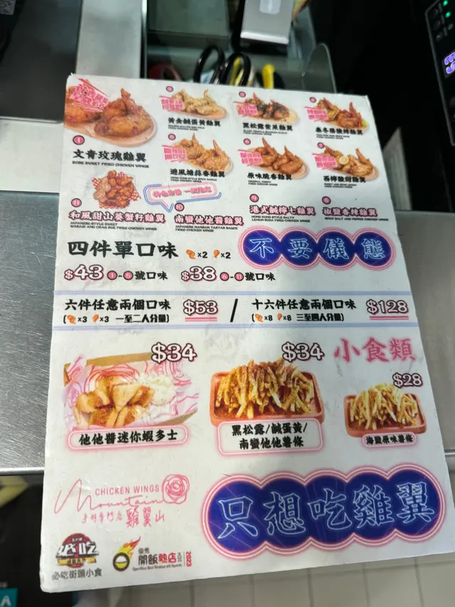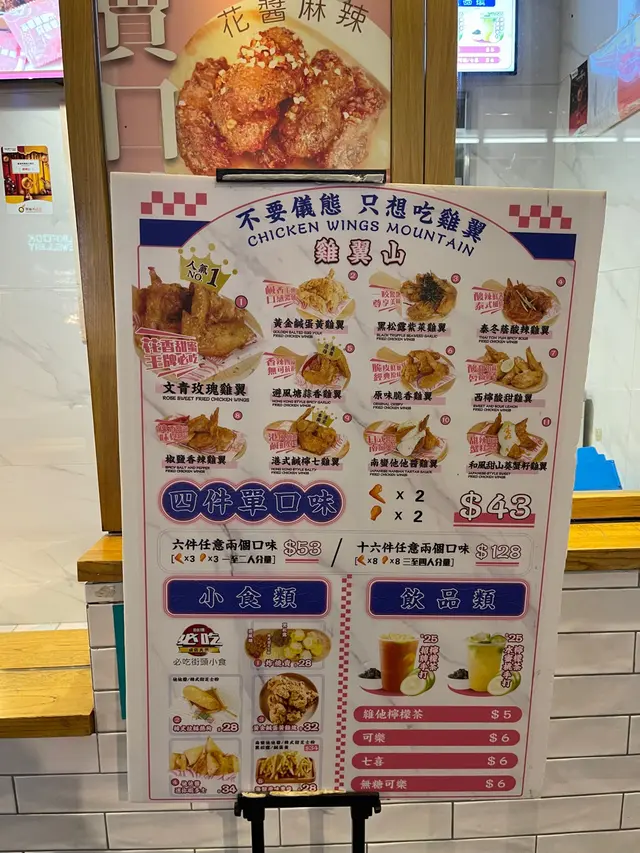 經過雞翼山~見到套餐A$48,就買左黎食~簡左文風青雞翼、海苔肉鬆雞塊、炸燒賣和檸檬茶。文風青雞翼的外皮炸得金黃酥脆,裹上特製的玫瑰醬,散發出淡淡的花香。咬下去後,雞肉的嫩滑和玫瑰香氣交織在一起,好食。本身係好鐘意食雞翼~可惜個餐得2隻😭唔夠喉。而海苔肉鬆雞塊,雞塊外層裹滿了海苔和肉鬆,炸至金黃,口感外脆內嫩。海苔的鹹香與肉鬆的鬆軟相得益彰,但對比雞翼~就真係雞翼出色好多好多好多~。炸燒賣則是一道經典的港式小吃,外皮炸得酥脆,不過不失。…查看更多