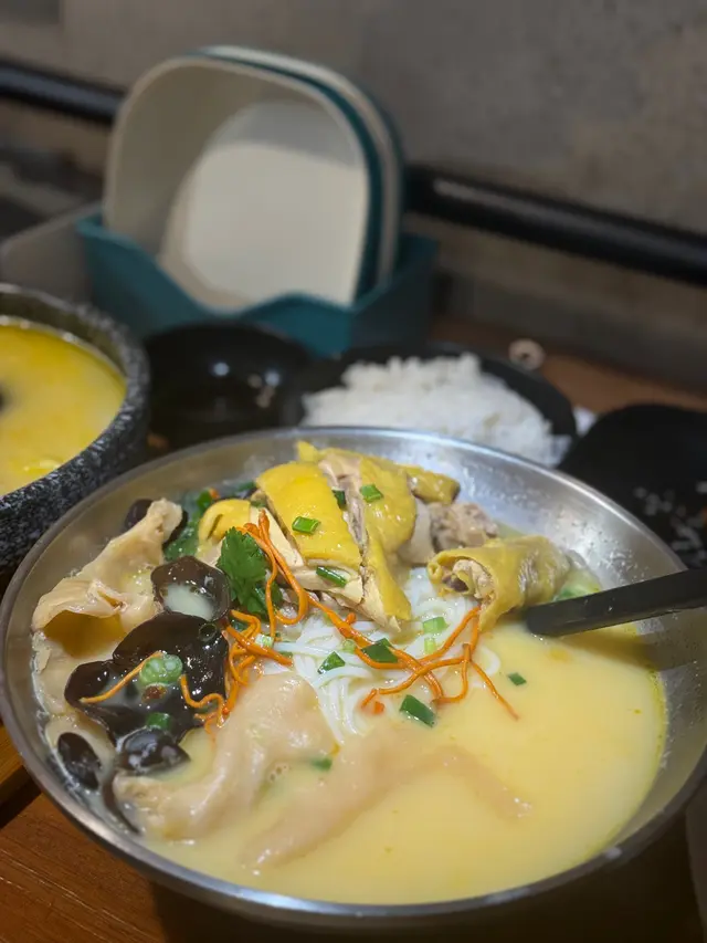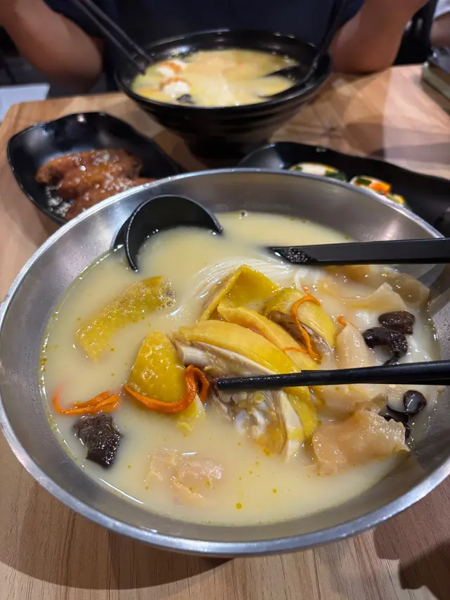 ✨觀塘駱駝漆一向美食多「雞駅」是其中一間,兩點幾嚟到都要排長入座,這裏的花膠滑雞米線非常出名。***** ***** ***** ***** *****招牌花膠湯米線🍜必試招牌米線,湯底超甜濃香,雞肉豐富啖啖肉,花膠大大嚿。姬松茸竹笙花膠湯米線🍜湯底一樣濃香,姬松茸竹笙新鮮好味,雞嘅份量都係較多。蜜糖雞翼🐔蜜糖雞翼外脆內軟,好味到一隻接一隻。總括來說,店內坐滿人流,大家都似乎很滿意,餐牌還有雞飯提供選擇。…查看更多