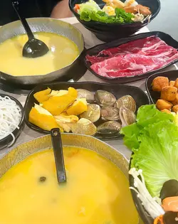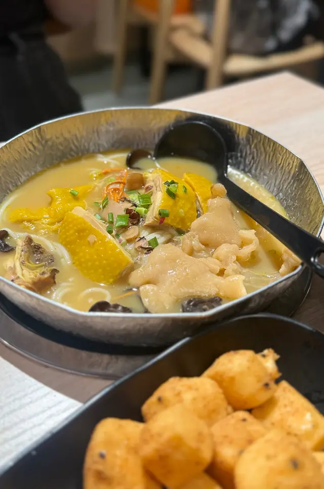 從駱駝漆大廈的始創店一直支持「雞駅」,到而家已經開到第三間分店,米線關注組都大推,真係深得民心!🥰🙌🏻每間分店都有唔同嘅特色,東廣場分店座位唔多,但地理位置最近地鐵站,外賣自取🥡好方便。業運工業大廈分店環境最舒適,有一人火鍋🍲供應,我個人最鍾意❤️去業運工業大廈分店,因為仲有免費羅漢果茶供應,勁貼心!🥰除咗招牌花膠雞米線之外,其實仲有其他粉面飯🍚如擔擔麵、花甲粉等供應。粉麵由$45起,價格相宜,CP值高,可謂觀塘區上班族恩物💕🤩😚🔸姬松茸竹笙花膠雞米線($78)湯底甘香順滑,鮮香味美,🥰雖然唔係濃稠到黏口個種,但勝在無味精,飲完都唔會覺得口渴。👍🏻花膠真材實料,足三大塊!口感腍滑厚身~😙而雞則嚴選三黃雞,份量足,有五六件之多,肉質嫩滑有雞味!😌姬松茸爽脆;竹笙爽脆,吸滿湯汁,不過就得一塊。🔹雞駅一人火鍋餐($88起)1️⃣6款自家湯底任選其一2️⃣自選一款肉類🥩:豬、牛、雞🐓3️⃣自選一款主食:米線、飯🍚、上海麵4️⃣每鍋都有固定配料:長腳蟹棒x2、芝士竹輪x1、芝士腸x2、福袋x1、時菜、粟米、雲耳、金菇、蟲草花我哋揀左藥膳黃酒花膠湯,一上枱就聞到香濃黃酒香✨☺️藥材味唔會好重,但酒香十足,飲落順喉暖胃💯🥰極黑豚肉片($98)份量勁多,有7至8塊,美國🇺🇸SRF 極黑豚肉質鮮嫩多汁,帶細緻的大理石油花,肉味濃郁。👍🏻另外,欣賞店家加湯都係加雞湯!❤️ 🔸椒鹽粟米🌽($38)炸至金黃,外酥內軟,加上椒鹽等調味,夠晒香口惹味!😎…查看更多