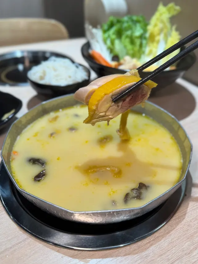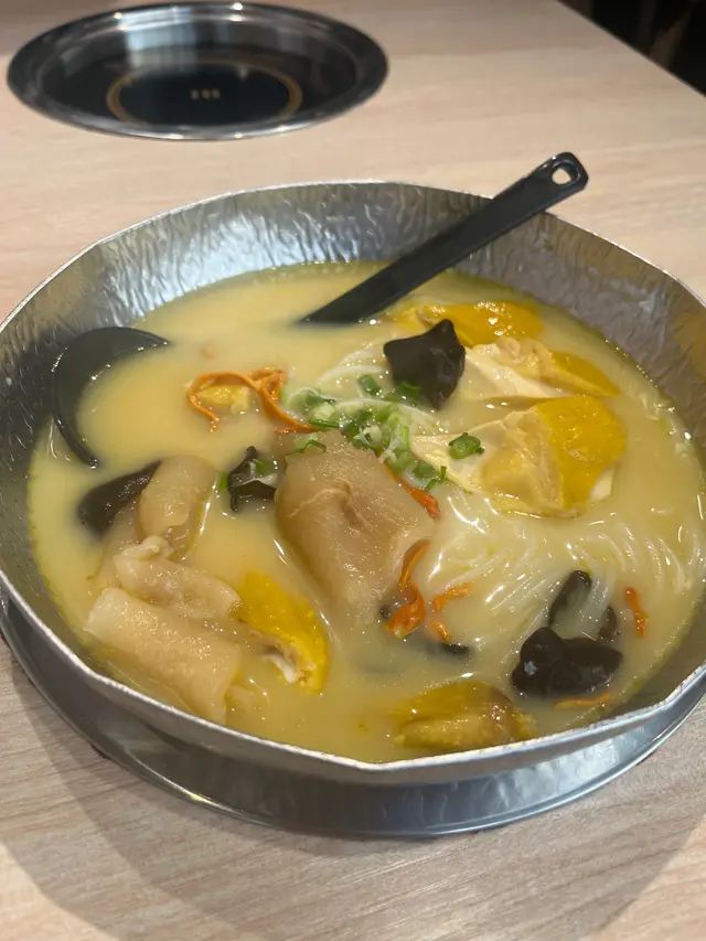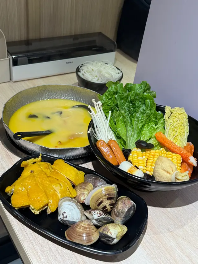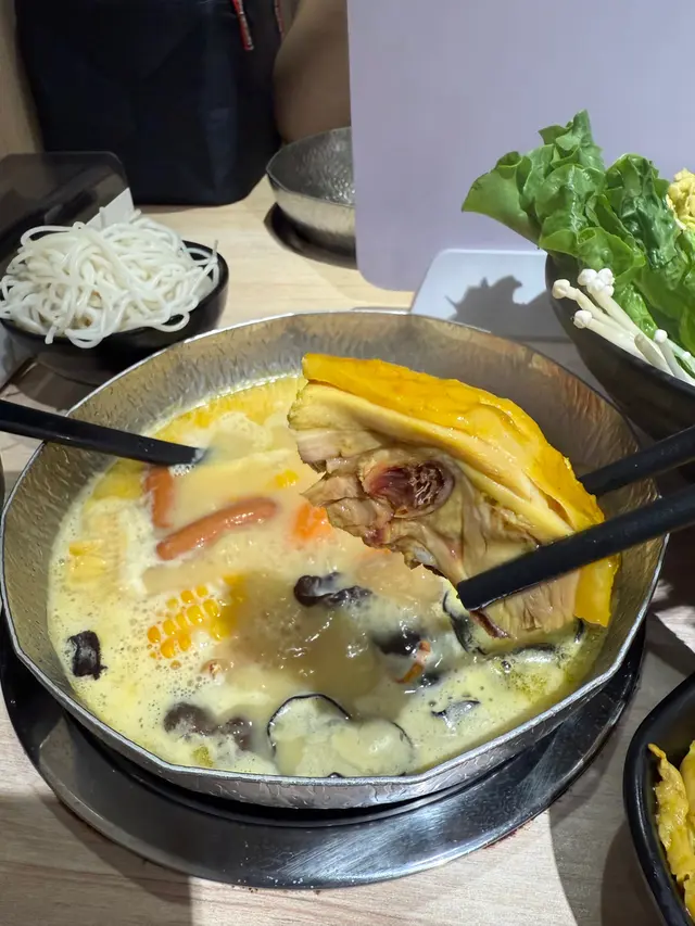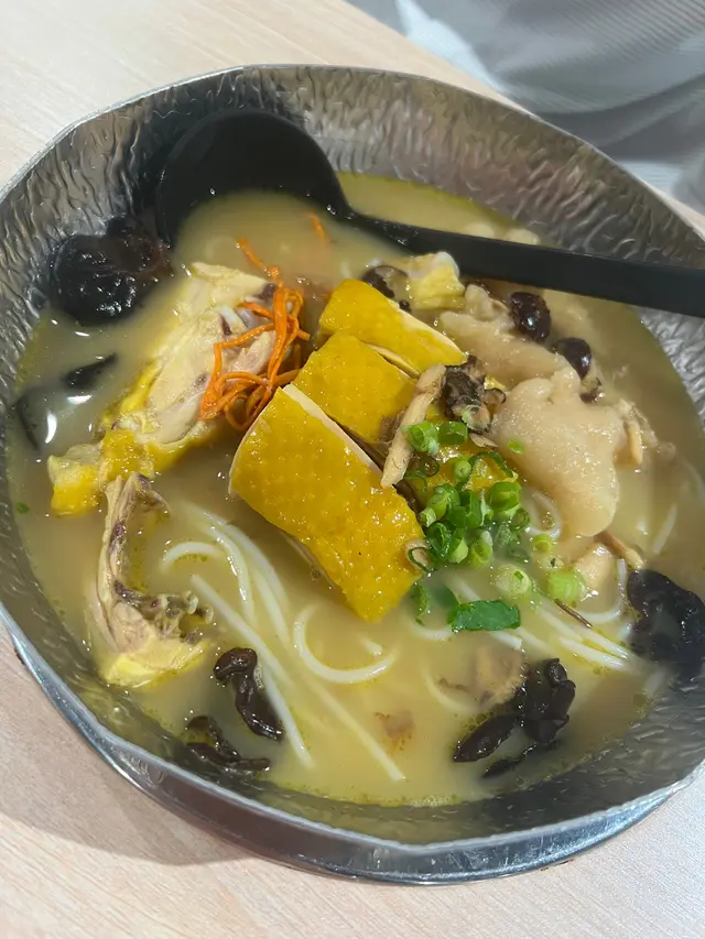 從駱駝漆大廈的始創店一直支持「雞駅」,到而家已經開到第三間分店,米線關注組都大推,真係深得民心!🥰🙌🏻每間分店都有唔同嘅特色,東廣場分店座位唔多,但地理位置最近地鐵站,外賣自取🥡好方便。業運工業大廈分店環境最舒適,有一人火鍋🍲供應,我個人最鍾意❤️去業運工業大廈分店,因為仲有免費羅漢果茶供應,勁貼心!🥰除咗招牌花膠雞米線之外,其實仲有其他粉面飯🍚如擔擔麵、花甲粉等供應。粉麵由$45起,價格相宜,CP值高,可謂觀塘區上班族恩物💕🤩😚🔸姬松茸竹笙花膠雞米線($78)湯底甘香順滑,鮮香味美,🥰雖然唔係濃稠到黏口個種,但勝在無味精,飲完都唔會覺得口渴。👍🏻花膠真材實料,足三大塊!口感腍滑厚身~😙而雞則嚴選三黃雞,份量足,有五六件之多,肉質嫩滑有雞味!😌姬松茸爽脆;竹笙爽脆,吸滿湯汁,不過就得一塊。🔹雞駅一人火鍋餐($88起)1️⃣6款自家湯底任選其一2️⃣自選一款肉類🥩:豬、牛、雞🐓3️⃣自選一款主食:米線、飯🍚、上海麵4️⃣每鍋都有固定配料:長腳蟹棒x2、芝士竹輪x1、芝士腸x2、福袋x1、時菜、粟米、雲耳、金菇、蟲草花我哋揀左藥膳黃酒花膠湯,一上枱就聞到香濃黃酒香✨☺️藥材味唔會好重,但酒香十足,飲落順喉暖胃💯🥰極黑豚肉片($98)份量勁多,有7至8塊,美國🇺🇸SRF 極黑豚肉質鮮嫩多汁,帶細緻的大理石油花,肉味濃郁。👍🏻另外,欣賞店家加湯都係加雞湯!❤️ 🔸椒鹽粟米🌽($38)炸至金黃,外酥內軟,加上椒鹽等調味,夠晒香口惹味!😎…查看更多