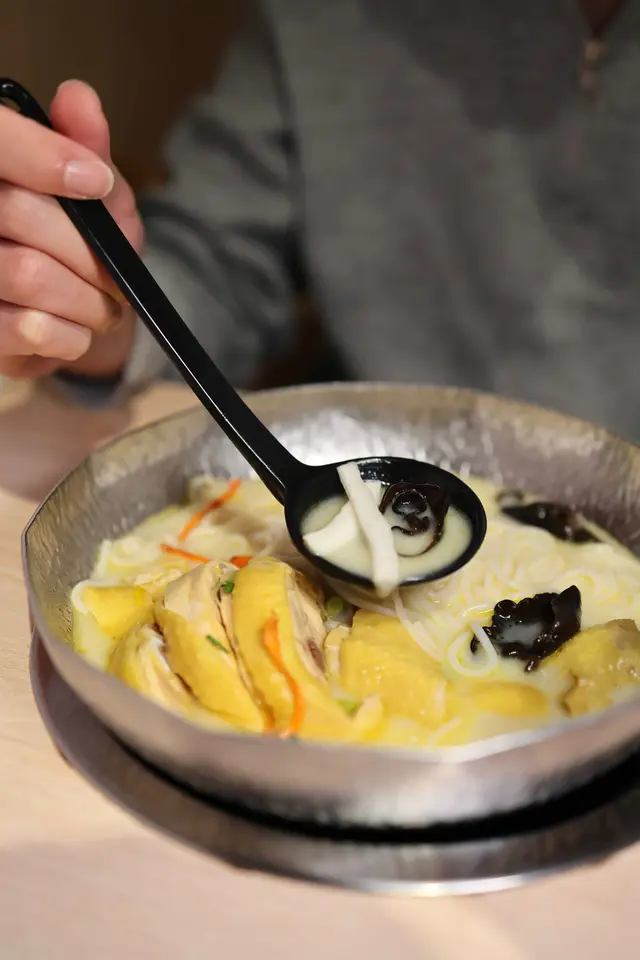 今晚去「雞駅」吃米線,這間已開至三間分店的米線專門店,每間分店皆獨具特色:駱駝漆大廈首間米線專門店是始祖,東廣場分店以外賣便捷取勝,最愛觀塘駿業里的這間分店,環境寬敞,更提供一人火鍋,又可以開着電磁爐「慶」着,就可以吃着熱辣辣的米線,大讚!胡椒豬肚雞米線湯底以濃郁的胡椒香氣為主調,入口微辛,豬肚處理得很好,質地新鮮爽脆;雞件經預先汆燙,肉質保持嫩滑,雞味醇厚。整體搭配十分好,我們把整碗湯喝完。招牌花膠雞米線甫上桌,撲鼻而來的雞湯香氣已令人食指大動。湯底每日鮮熬,金黃澄澈,入口綿密豐潤,花膠厚實滑溜,膠質充盈,三大塊分量十足;雞件多達五、六塊,肉質厚身嫩滑,雞味濃郁。每一口湯與都讓人回味無窮。麻藥蛋以特製醬油醃製的半熟流心蛋,蛋黃流淌著麻油香氣,鹹甜交織的風味層次豐富。蟹肉忌廉薯餅外層酥脆,內餡綿密,蟹肉與忌廉的結合濃郁而不膩,好味!此外,店家於每日下午三點後推出的扭蛋活動亦富有趣味。消費滿二百元即可獲代幣一枚,挑戰夾公仔機贏取小食或九折優惠。…查看更多