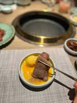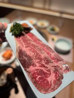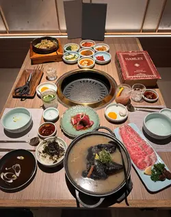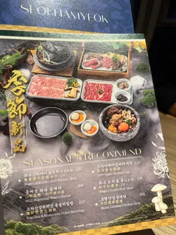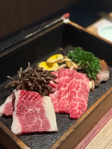 朋友想食韓燒,我第一時間諗到尖沙咀海港城嘅雪下覓炙,佢除咗食物有質素,佢環境都非常舒適。好適合同朋友聚餐食飯慢慢傾。一坐低,侍應就拎咗多碟韓式前菜小食過嚟,仲全程幫我哋燒肉,服務態度細心又nice。佢哋今期季節新品非常出色,系各種食材同山野菇菌嘅搭配組合。和牛.牛肝菌壽喜燒,啲和牛切得精細,肉質好嫩滑,壽喜燒汁入味帶點微甜,唔會過鹹,好合拍。山野菇菌·和牛燒肉盛,擺盤有講究,放置在一本好似寶典咁嘅書入面,打開將面頭張紙燒著拉開序幕,就見到擺盤靚靚嘅和牛同菇類,和牛雪花色澤均勻。紋路起靚份量十足,肉片鮮紅帶油脂,牛肝菌同山野菇菌夠鮮甜,侍應幫我哋燒到剛剛好,香氣撲鼻,肉質彈牙又嫩,入口即化。彦陽和牛沙蔥燒,系用和牛卷起嘅蔥卷,燒到正好,蔥香同和牛肉配搭香口,肉質一流。羊肚菌參雞湯,呢個真係勁有驚喜,估唔到佢嘅用咗原隻竹絲雞同人參,勁多料,最鐘意佢粥底口感層次豐富,入口系羊肚菌嘅香,又有啲藥膳同紅棗香,飲落好暖胃,感覺好滋補。蟹粉石頭鍋飯,在熱辣辣石頭飯上淋上香濃蟹粉,飯粒粒分明帶有淡淡蟹香,石鍋底嘅焦香飯粒加埋蟹粉嘅鮮甜,帶香脆口感,實在惹味。荔枝梳打同菠蘿梳打,清甜又爽口,啱啱好解膩,賣相仲要好靚。…查看更多