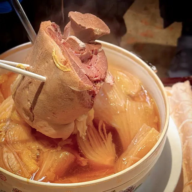 這夜跟一大班食友走進老上海的氛圍!品嚐一系列經典的本幫菜,吃得嘴巴跟肚皮一起叫好更回味無窮。餐廳正是位於南洋酒店內的雪園壹號!設於酒店地牢甫踏進餐廳內感受到那份優雅的老上海味道。這夜我們兩席安座於廂房之中,來品嚐雪園跨越六十載8道傳統菜期間限定菜單,先嘆著幽香的雪菊來期待這場精彩的美食。冷盤四小拼!手撕烤夫如海綿般鬆軟彈牙,索盡調味恰好的醬汁超唰嘴,醉香豬手口感爽脆帶上幽幽的酒香太迷人喇,楊州素黃雀內餡非常清爽吸滿鮮甜湯汁吃得非常盡興,上海燻魚即叫即炸的態度非常讚,鹹甜調教得恰到好處仍然吃到魚肉鮮香充滿靈魂的好味道。火瞳雞燉津白湯是餐廳的拿手好戲確實叫我非常期待。揭開盅蓋鋪滿了金黃色的津白,服務員為我們呈現巨大火瞳,此刻大家的手機和相機當然非常忙碌。那口足料的火腿雞湯鮮甜香濃怪好喝,但最令我心動肯定是連皮帶筋的金華火腿,那份甘香滋味真的無與倫比喔。我們從6選4中揀上以下菜式!乾燒丸子明蝦球看似簡單的一碟蝦球內裏蘊含不少玄機,首先大蝦球爽彈鮮甜帶點辣勁的醬汁味道完美,內裏還加入了軟糯丸子令口感更加突出,最後配搭充滿米香的香脆鍋巴,這道菜完美演繹淮揚菜的精髓。外婆紅燒肉!紅燒肉閃閃發光非常吸睛,連皮肉入口甘香鬆化鹹香惹味真的回味無窮,而吸滿醬汁的虎皮雞蛋則帶出家的味道很可口。麻婆豬蹄筋!這道是雪園第三代主理人偉哥的得意自創菜式,滿滿骨膠原的豬蹄筋注入了麻婆豆腐的香辣惹味,帶出另一番感覺教我們大開口界。清炒鱔糊!這道是我心心念念的上海菜,小時候大部份上海菜館也炮製得非常好味道,可惜近年已經吃不到有質素的出品,這夜我終於再次品嚐到這精彩的滋味。黃鱔吃下去口感非常彈牙而且充滿鮮味,配搭超濃郁的醬汁吃得我心猿意馬。從小吃鱔糊我也喜歡配銀絲卷!多謝食友們支持令我得以重溫這幸福的滋味。經典生煎包!聽聞以往需要點上火曈翅才能品嚐到這生煎包,現在可以於套餐中吃得到超妙啊。全人手製作的生煎包入口鬆軟,底部略帶香脆口感十足,內裏的肉餡鬆化鮮香味道純粹吃得非常舒服。隨以上周年菜單可以震撼優惠價$88/位,品嚐到蟹粉豆腐、蟹粉湯圓或蟹粉燴麵(三款任擇其一)精選手拆鮮蟹粉時令菜式超抵吃喔。蟹粉豆腐!豆腐用火腿湯煨過豆味香濃之餘添加上底味,配搭香濃甘鮮蟹粉極盡吸引,自家調配的蟹醋記得不要錯過啊。蟹粉湯圓!於鹹湯圓中加入蟹粉包裹著震撼的鮮味,外皮也設有兩層先有薄皮鎖住蟹粉外層則帶來軟糯煙靭的口感,感覺有點像茶果般香軟迷人大愛之。蟹粉燴麵!超級濃郁的湯底配搭新鮮蟹粉那鮮味實在太過激動了,爽滑的麵條掛滿湯汁實在吃得好高興。最後甜品我們從香煎八寶飯和高力豆沙中選了後者!這個高力豆沙新鮮熱辣的做起哪有不好吃的道理。內裏除了香滑豆沙餡之外還有香蕉,將整件事昇華到一個更高的層次,香甜味美迷人至極多飽也鯨吞下肚。雪園跨越60載8道招牌上海淮揚菜菜單由即日至2026年1月31日晚市時段內供應,收費為$488/位+10%(四位起、必須預訂)。…查看更多