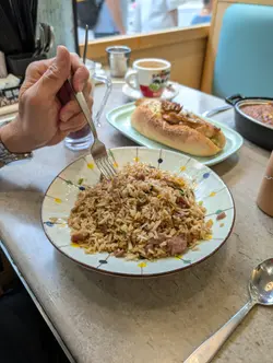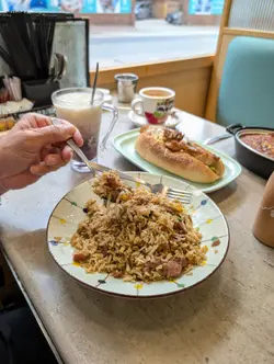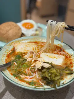 這間歷史悠久,已開業接近七十年的「雪山冰廳」,自從在好一段日子前翻新過後,我便沒有去過了,直到這一晚,我才與太太一起舊地重遊來探探它。這冰廳原來的舊裝修當然沒有了,取而代之的是一個亮堂堂的,現代化了的環境,企理乾淨,坐得也比以前舒服。這天來到,我倆點了冰室推介的「始祖椒鹽豬扒飯(炒底)」($78)加燉湯(+$15)、一份「上湯香菇浸時蔬」($35)和一個包括「經典芝蛋牛肉漢堡配迷你肉醬意粉」($62)的常餐。「始祖椒鹽豬扒飯(炒底)」因為用上了炒飯底,又添加了辣椒在炒飯裡面,剛剛炒起便上桌,是名副其實的熱辣辣。炒飯炒得甚好,飯粒乾身分明,雖然稍油,仍然好吃,而且相當刺激開胃。早已切成數件的椒鹽豬扒,泛著油光,十分惹味,不過就稍有點鹹,以「凍檸茶」(+$3)伴吃,正好解辣解膩和把鹹味沖淡。這天的燉湯是「牛蒡杞子燉赤肉」,湯味清甜可口,是好喝的燉湯。「經典芝蛋牛肉漢堡配迷你肉醬意粉」吃的絕對是老派港式西餐風味。傳統的港式漢堡包,包上撒了大量芝麻,包身柔軟,芝士、煎蛋與漢堡扒的組合令我不由得想起昔日港式快餐名店「時新漢堡包」美味的漢堡包,也許這裡的漢堡包還未及當年「時新漢堡包」的美味,可已能讓我回味一番。「迷你肉醬意粉」說是迷你,實質上一點也不迷你,大碟的意粉,加上漢堡包,絕對足以飽肚,而且意粉也頗彈牙呢!這天「上湯香菇浸時蔬」的時蔬是爽甜的娃娃菜,廚師十分慷慨,娃娃菜極多,配以少許香菇,才三十多元,抵食度滿分。在今日的香港,在時代的洪流衝擊下,有歷史的食肆已經愈來愈少,仍能繼續經營的,實在應該多加珍惜。…查看更多